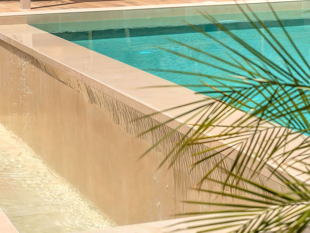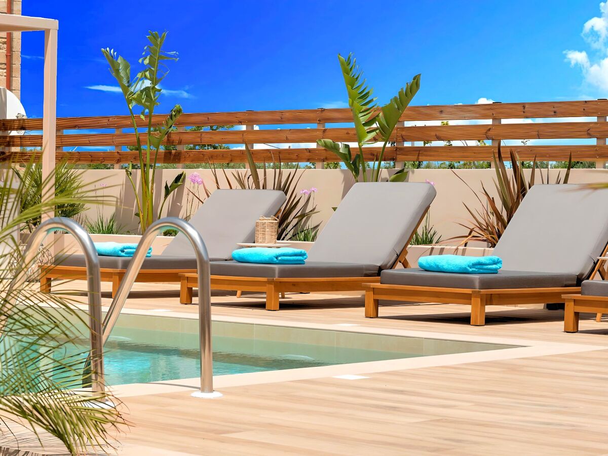 Outdoors, a spacious terrace with a BBQ and dining area overlooks the private pool, a relaxing sun beds area, and a heated large whirlpool.
