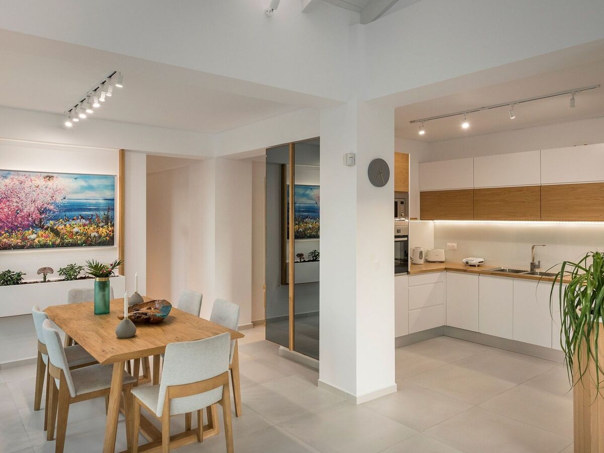 La cuisine faite à la main par les propriétaires dispose de tous les équipements nécessaires à un séjour confortable, tels que réfrigérateur, cuisinière électrique, lave-vaisselle, machine à laver, cafetière, grille-pain, bouilloire.