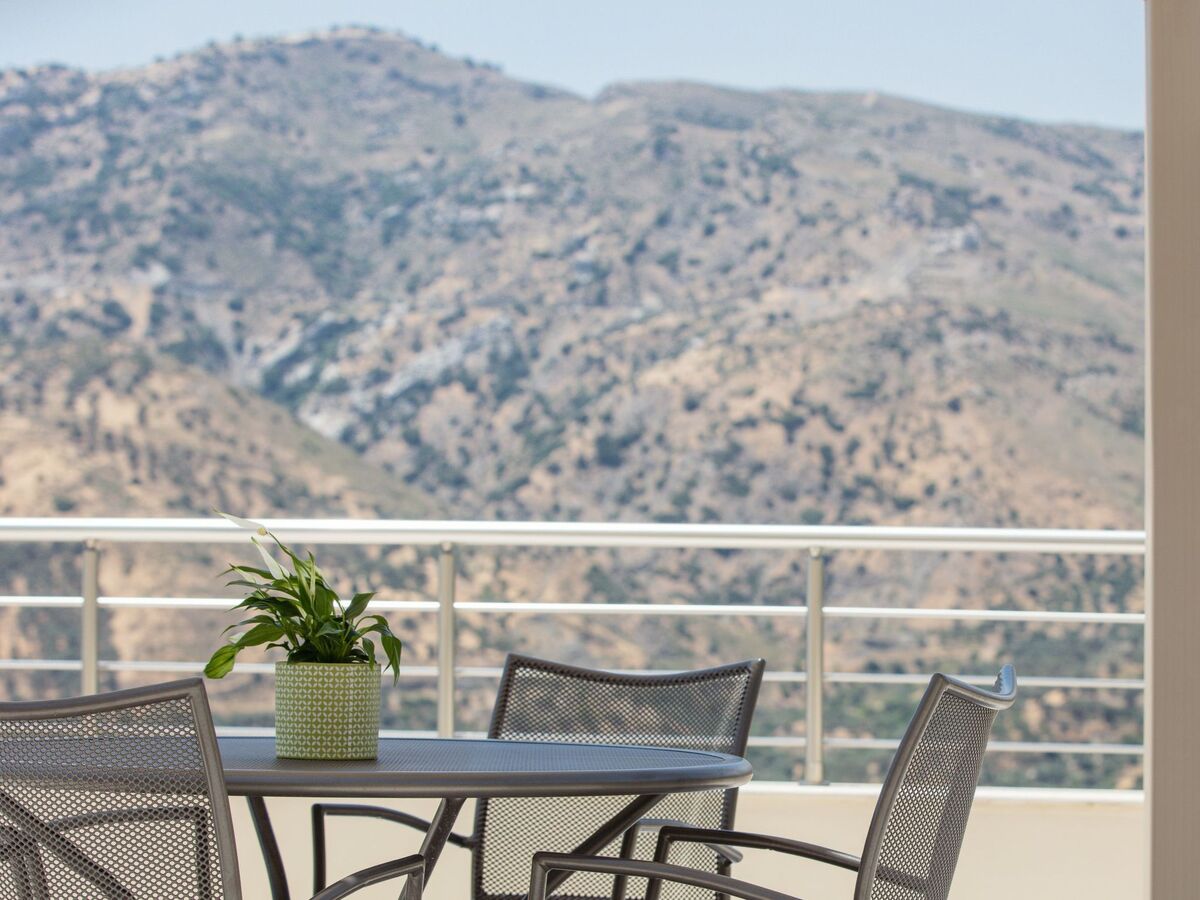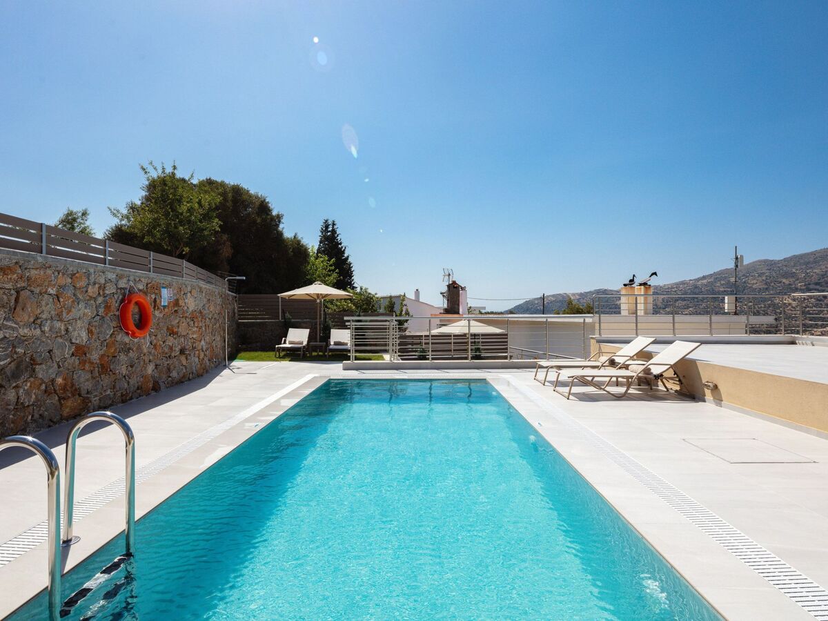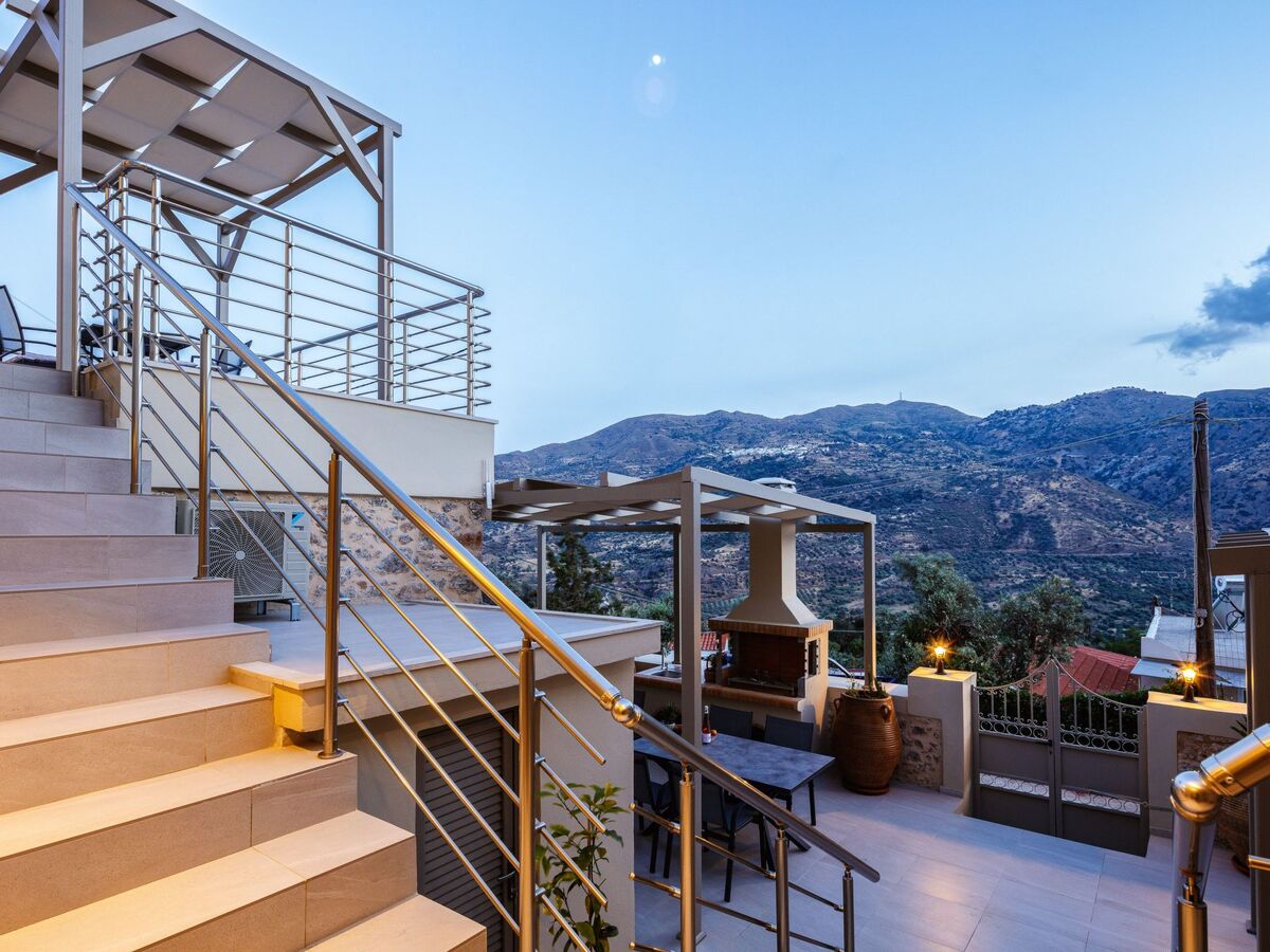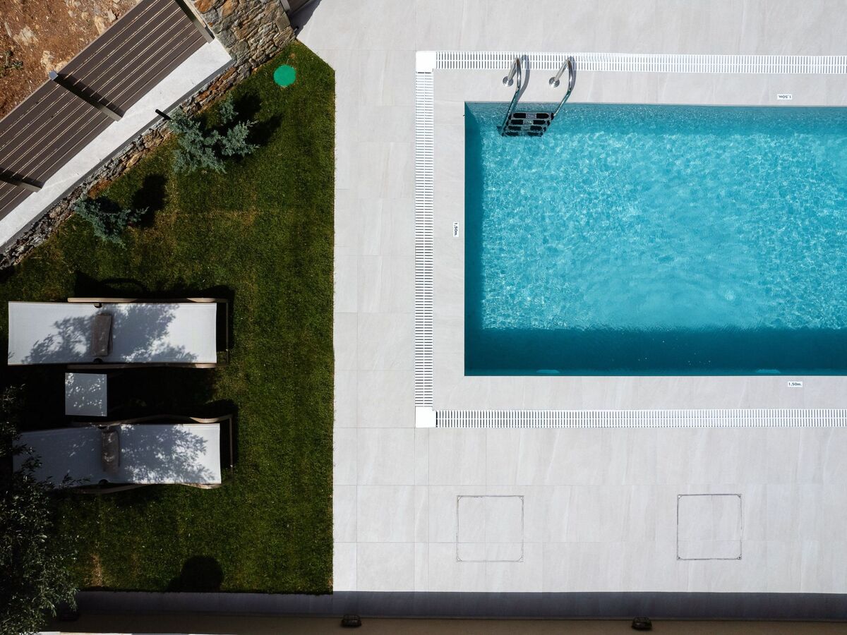 The outdoor area of Kedros Villa is nothing short of breathtaking, designed to offer ultimate relaxation and awe-inspiring panoramic views of the mountains.