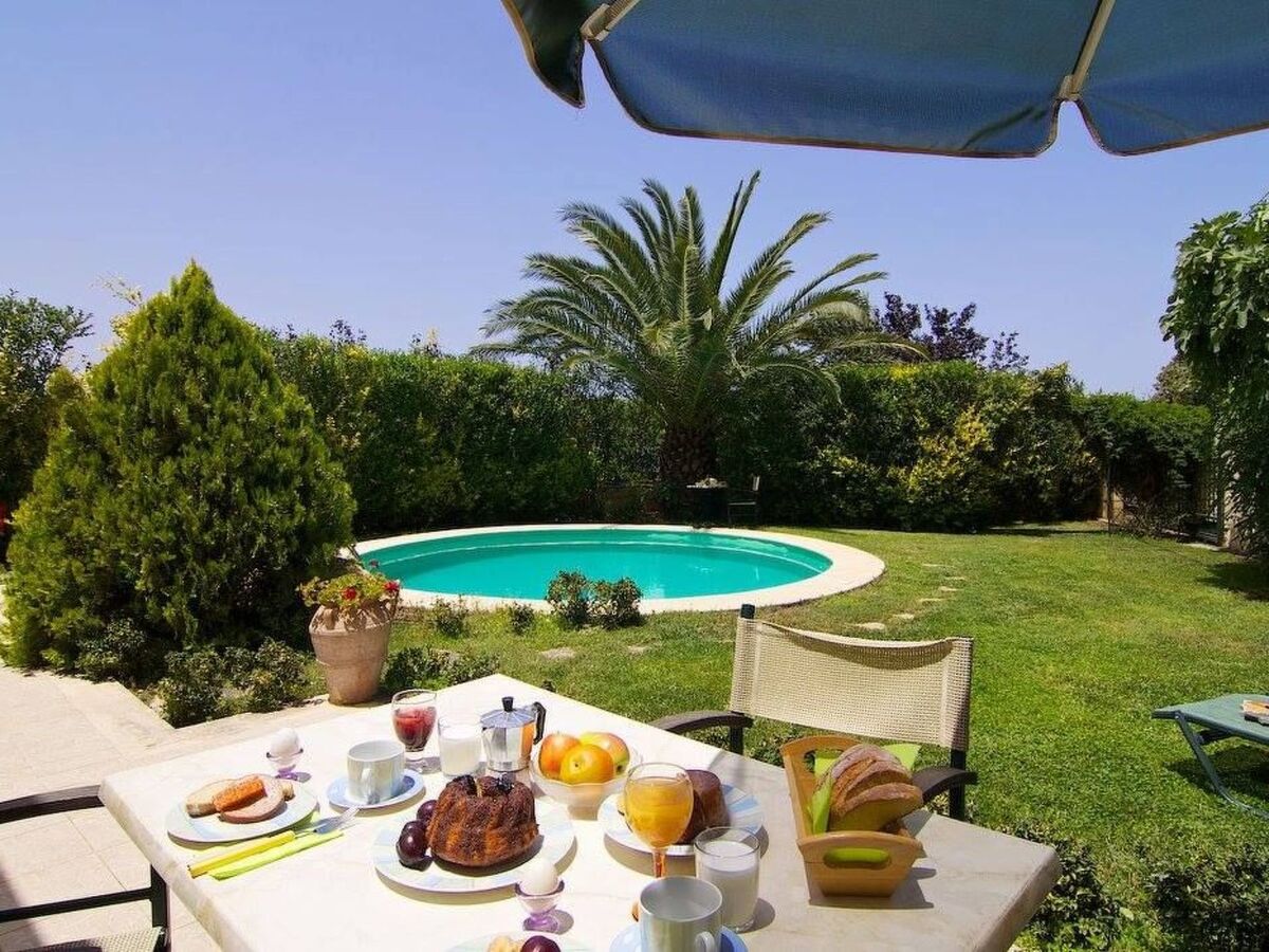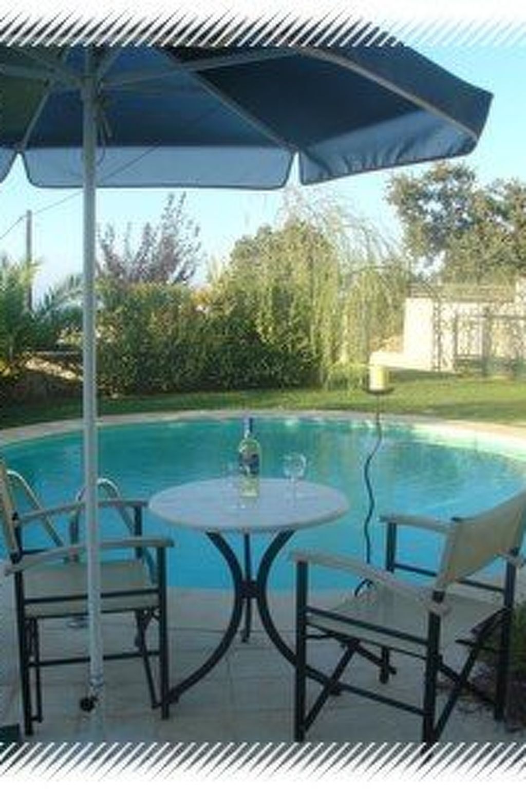 Outside the stone villa Erato there is a terrace on the ground floor with direct access to the private swimming pool in the garden.