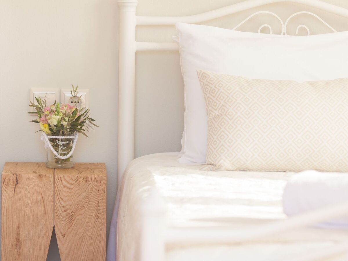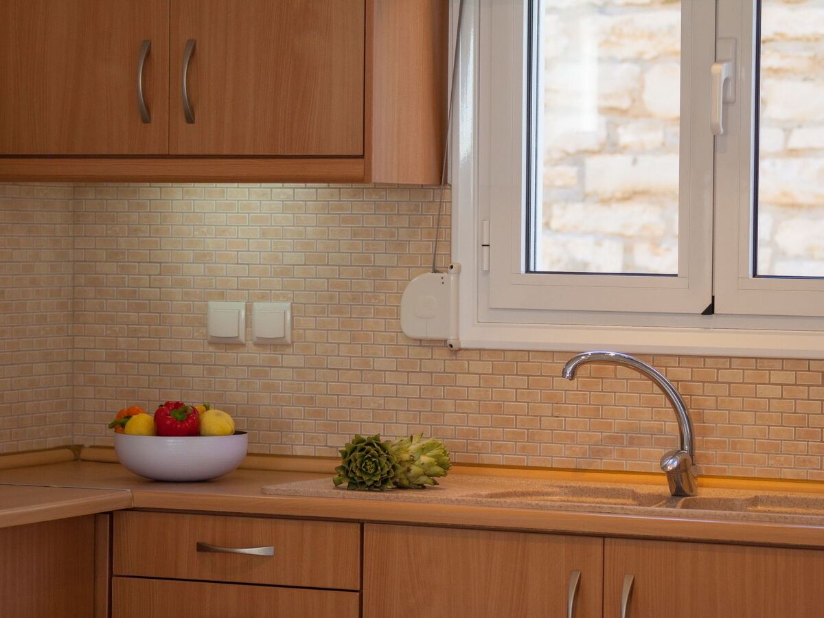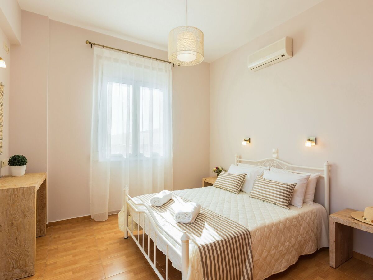 À quelques pas de là, vous trouverez la première chambre à deux lits et une salle de bains, avec accès à la terrasse de la pelouse, tandis que deux autres chambres et une salle de bains familiale se trouvent au niveau supérieur, chacune avec un balcon et de superbes vues.Ivi Villa dispose d'une belle terrasse de piscine isolée, idéale pour les petits-déjeuners ensoleillés d'été, avec vue sur la campagne crétoise et la mer.
