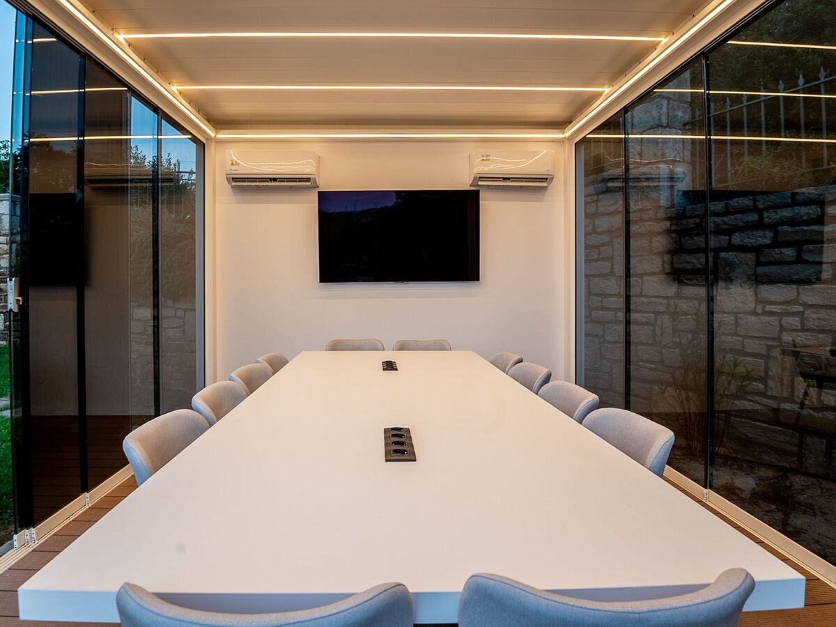 Each of the seven air-conditioned bedrooms is thoughtfully designed for comfort, with a mix of double and twin beds, 8 bathrooms, and private balconies overlooking the peaceful surroundings.