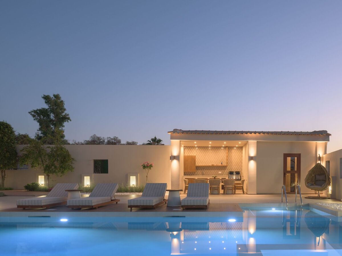 Step outside to the private pool area, complete with a shallow kids’ zone.