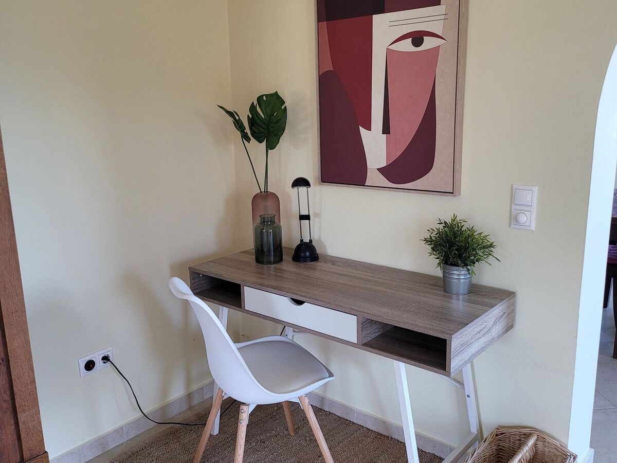 The villa features an outdoor terrace with garden furniture, parasol, sun loungers, a barbecue and a pizza/bread oven, perfect for cosy evenings under the stars.