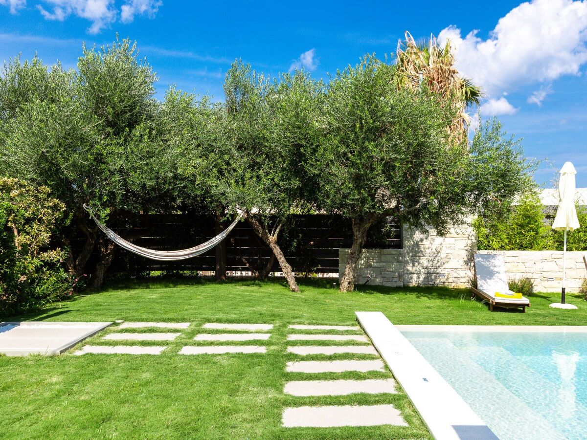 Autour de la piscine, vous trouverez des chaises longues, des parasols, un joli jardin et un coin salon.