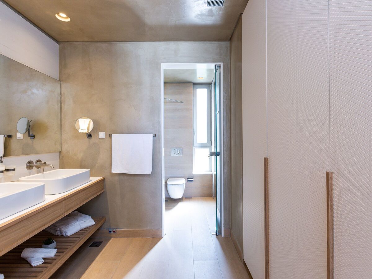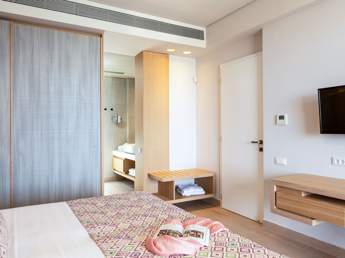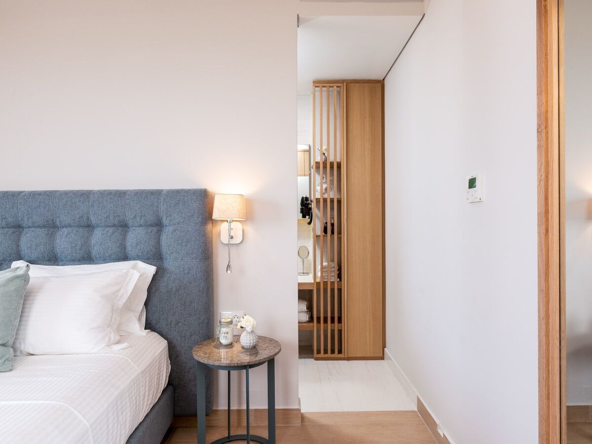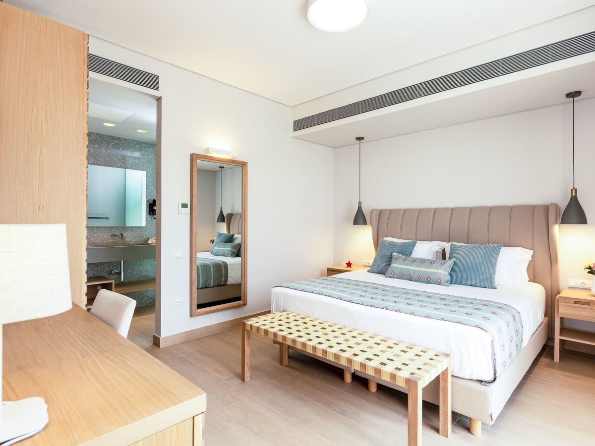 Au premier étage, 3 chambres avec un lit king size et une salle de bains attenante, toutes équipées de la climatisation, d'une télévision et d'un balcon