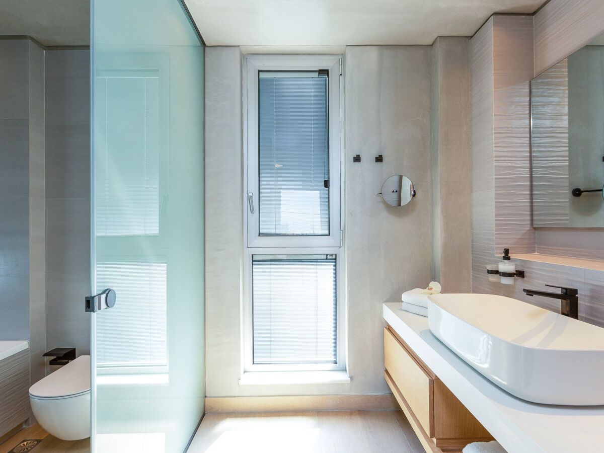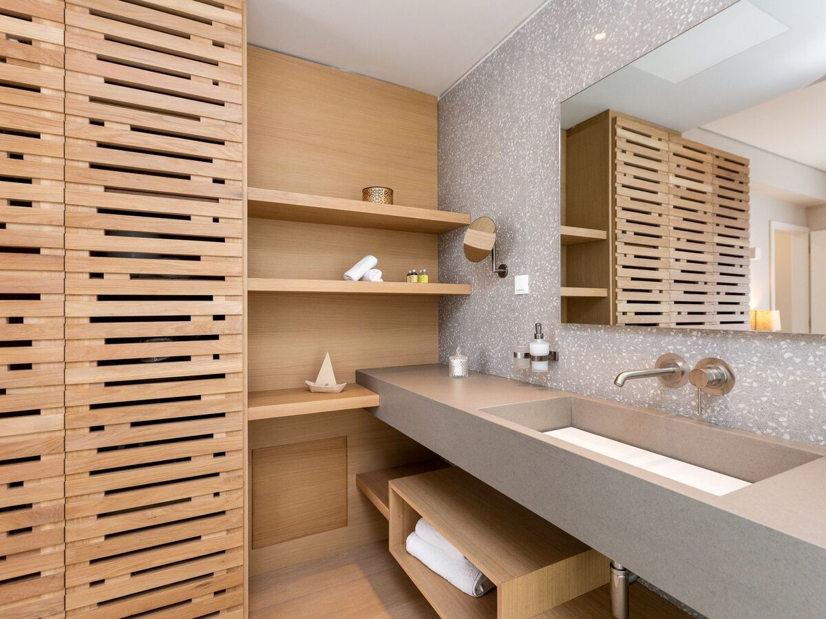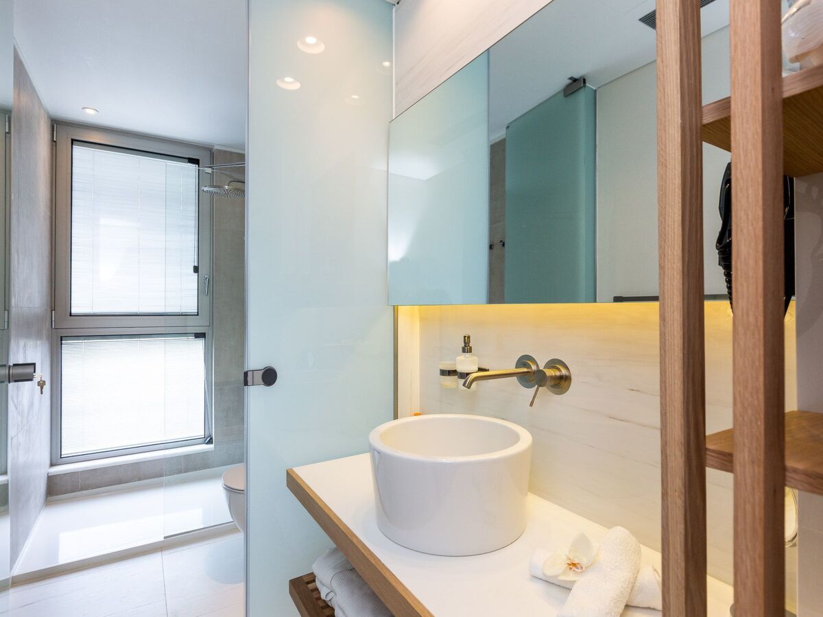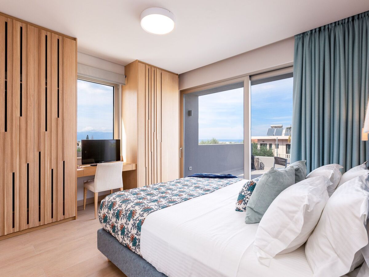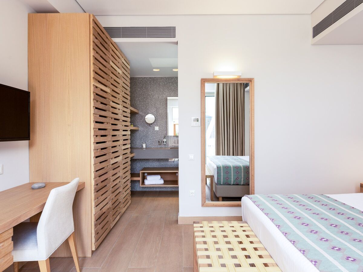 Au premier étage, 3 chambres avec un lit king size et une salle de bains attenante, toutes équipées de la climatisation, d'une télévision et d'un balcon