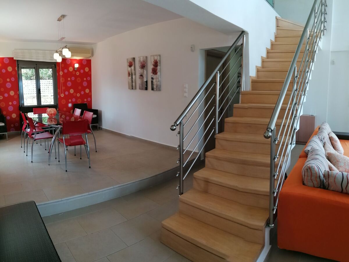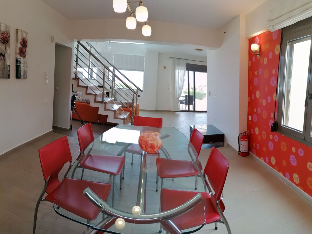 When entering Villa Irini, you can see the living room, the kitchen and the dining area.