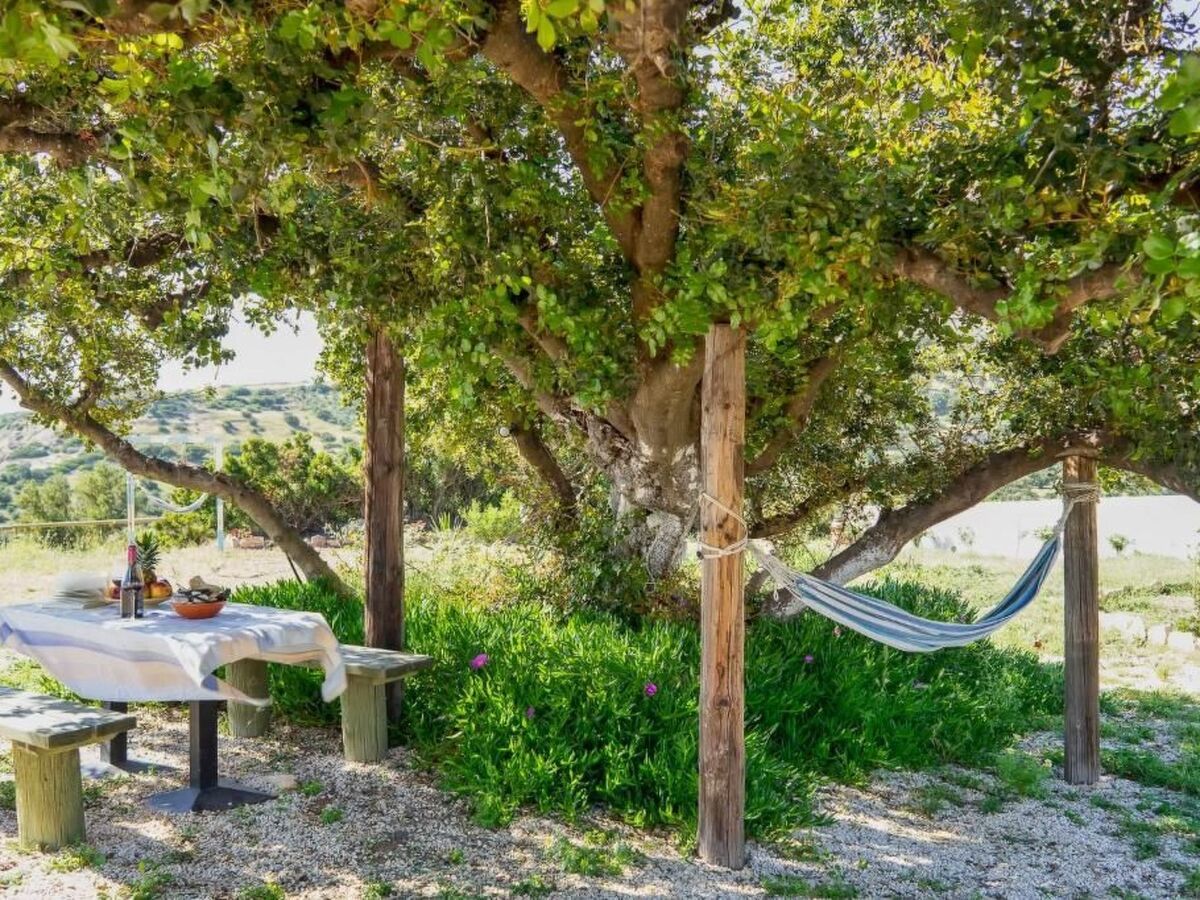Our house is located within a big garden, on the top of the hill, with unlimited views to the mountain and to the sea (it oversees two beaches, the Big and the Little Triopetra).