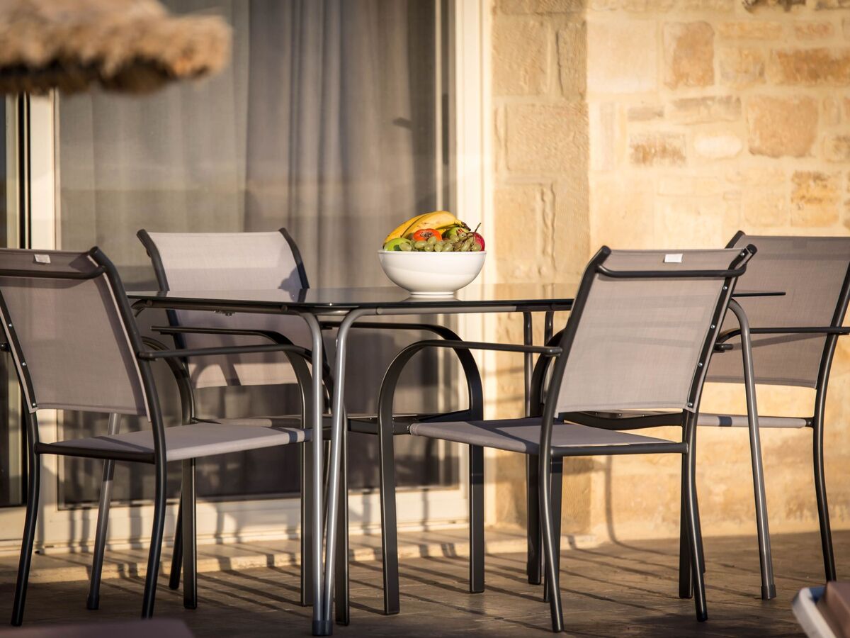 Chaque villa meublée de façon moderne dispose d'un espace extérieur spacieux avec une grande piscine privée (adaptée aux adultes et aux enfants), des chaises longues avec des tables d'appoint, une pergola, une salle à manger extérieure et un barbecue portable.