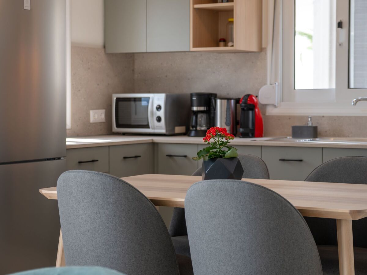 Identical in layout and elegance to Villa Chryssa, Villa Faye welcomes up to four guests into its bright and breezy interior.