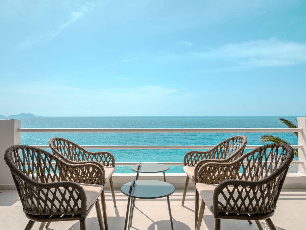 Step out onto the balcony to take in panoramic sea views as you dine outdoors or relax with a glass of wine.