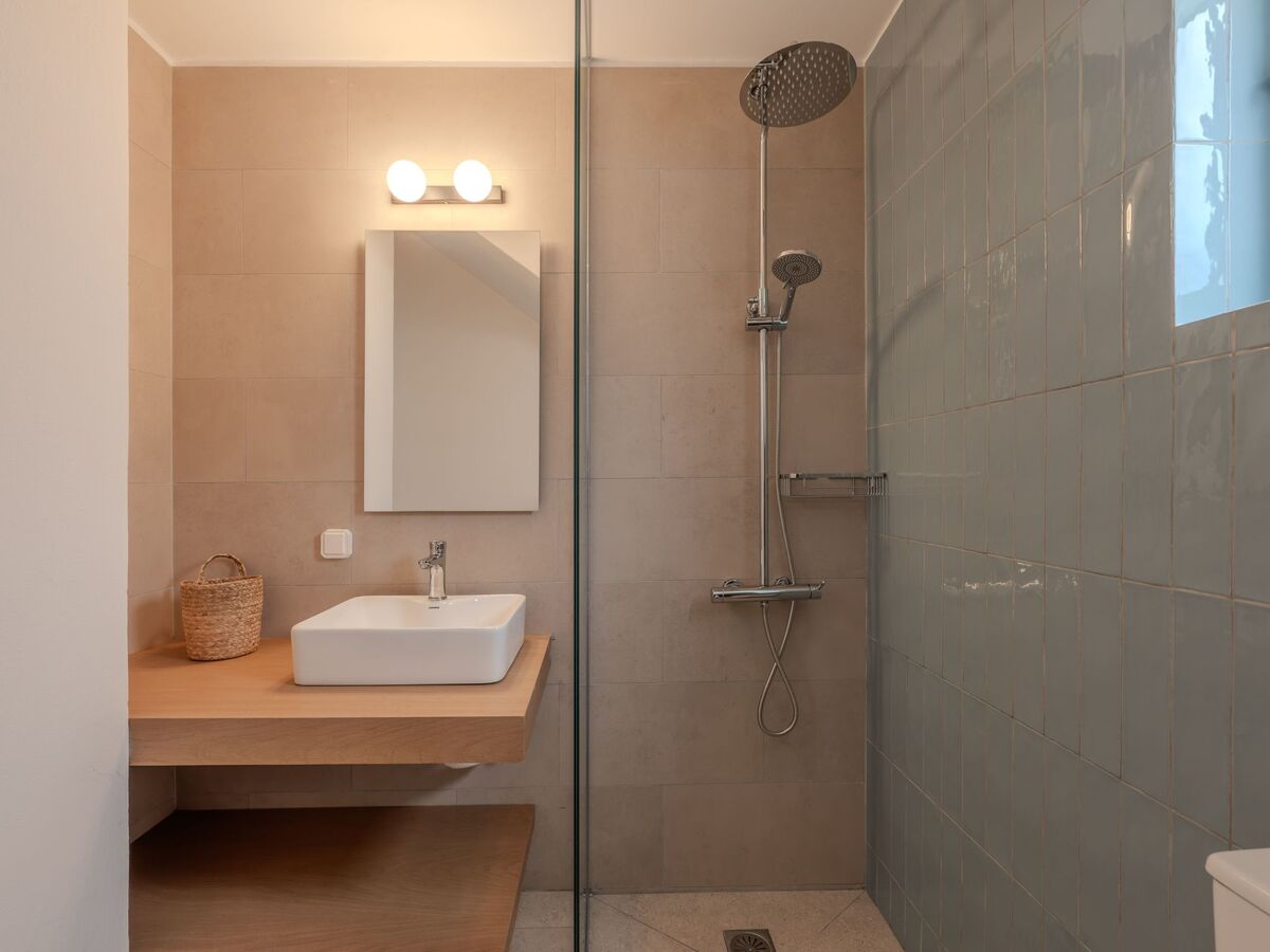 The nearby beach—a mix of soft sand and natural rock—is ideal for swimming, diving, or simply relaxing with the sound of waves in the background.