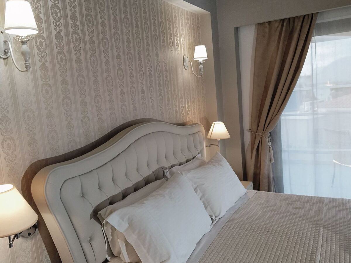 On the first floor is the master suite bedroom with a king size bed with hypoallergenic antistress mattress, a private bathroom with Jacuzzi shower, a led 32’’ satellite TV, a safety deposit box and a covered balcony with pool, garden and sea view.