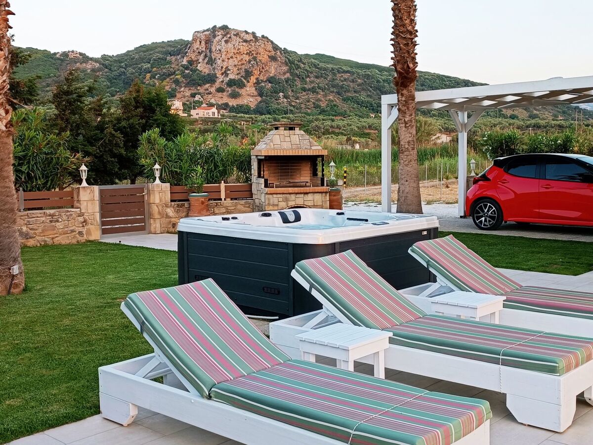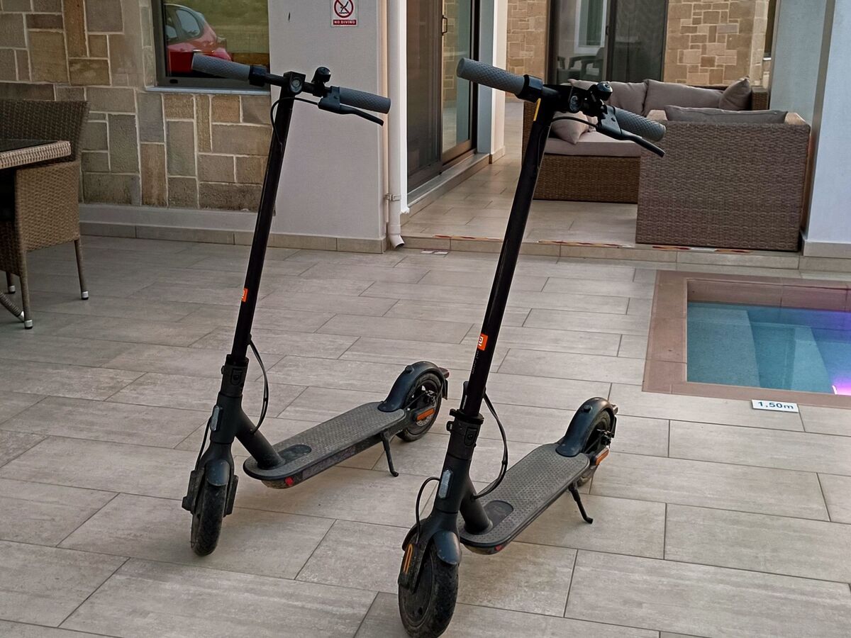 the villa has an outdoor hot tube jacuzzi and 4 electric scooters .