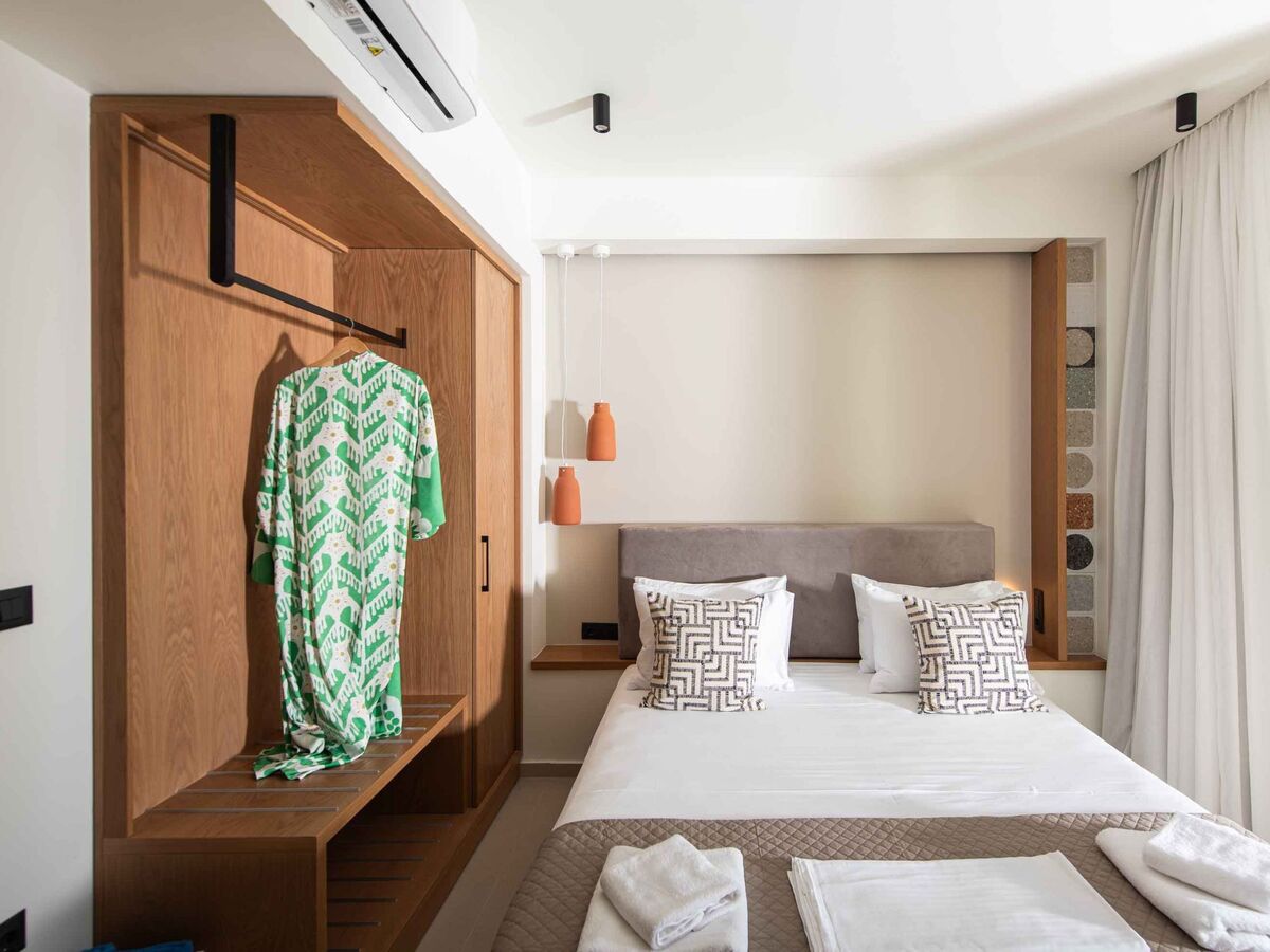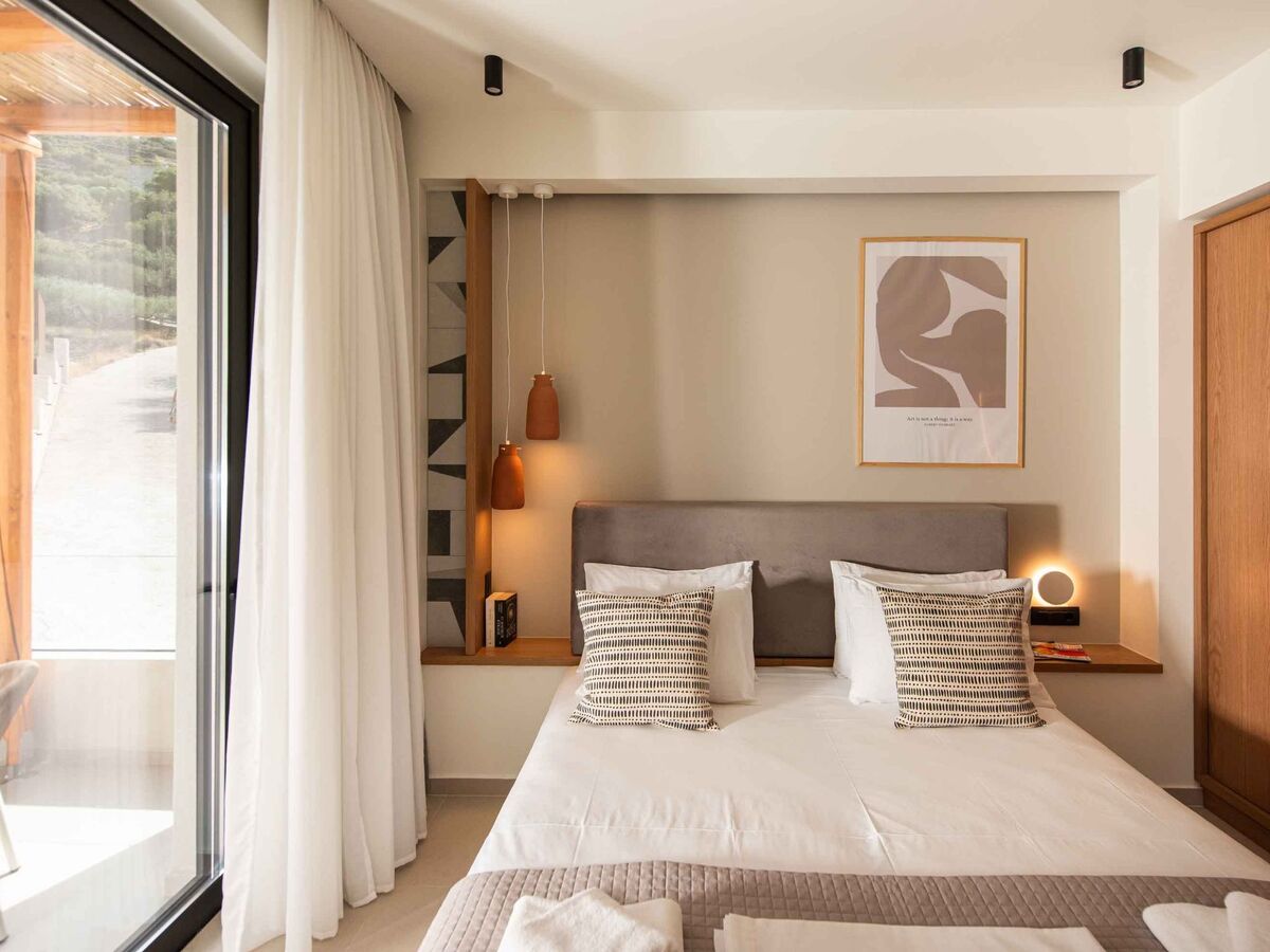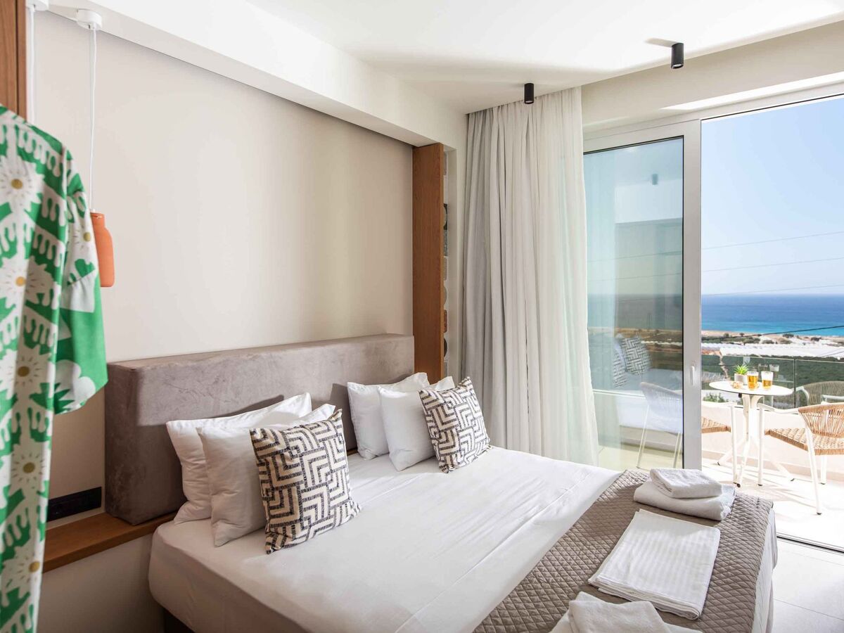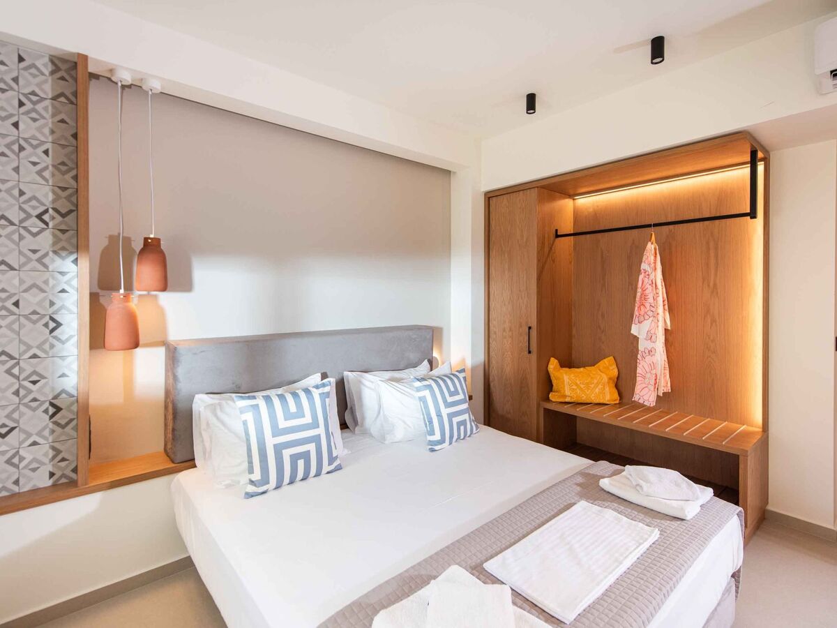 Bedroom 1: King-size bed (1.80×2.00), A/C, access to the outdoor area, Seaview