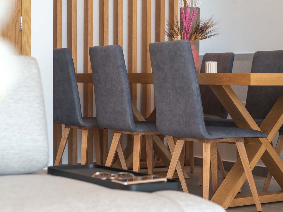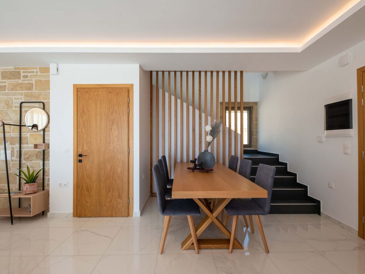 Au même niveau, il y a aussi une chambre à coucher avec une Smart TV par satellite et de grandes fenêtres qui créent l'illusion de la transparence et une salle à manger avec des sièges pour 6 personnes.