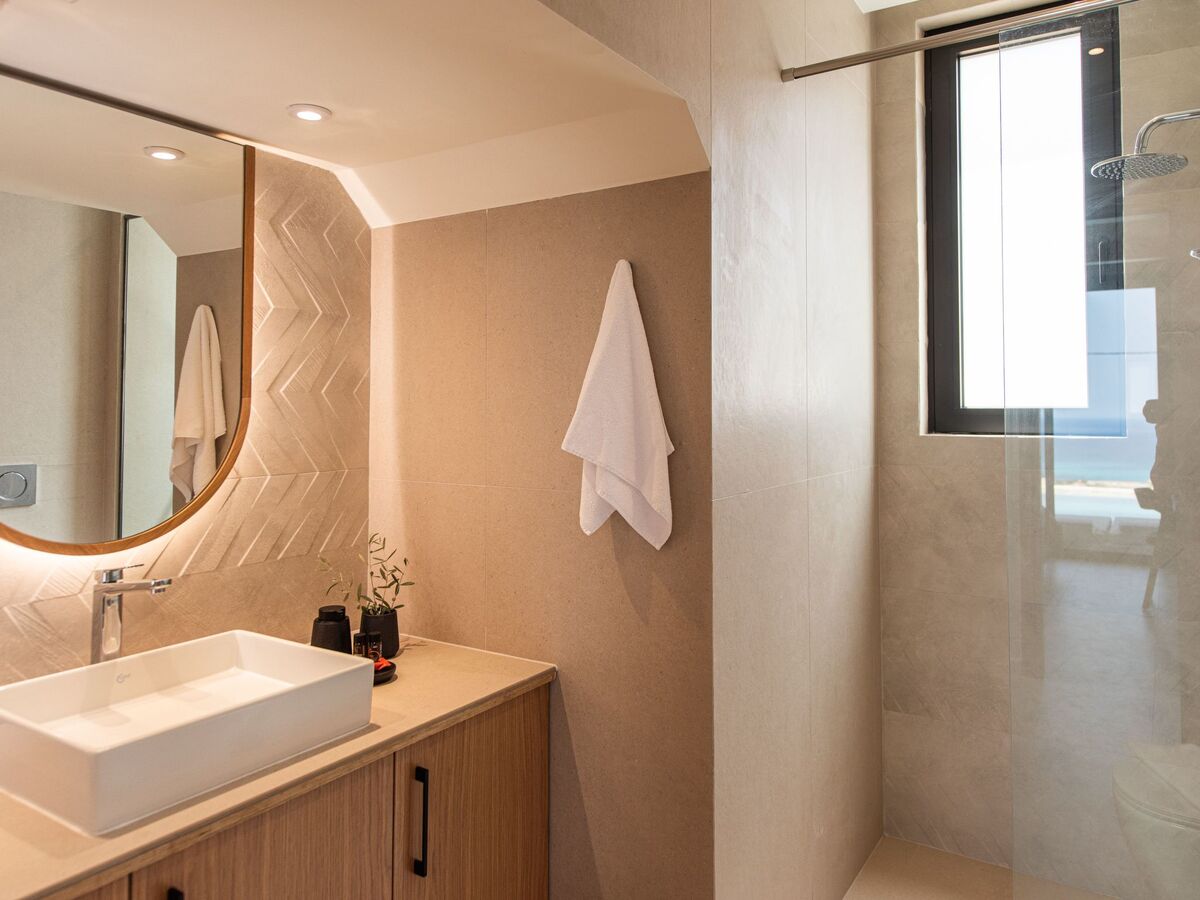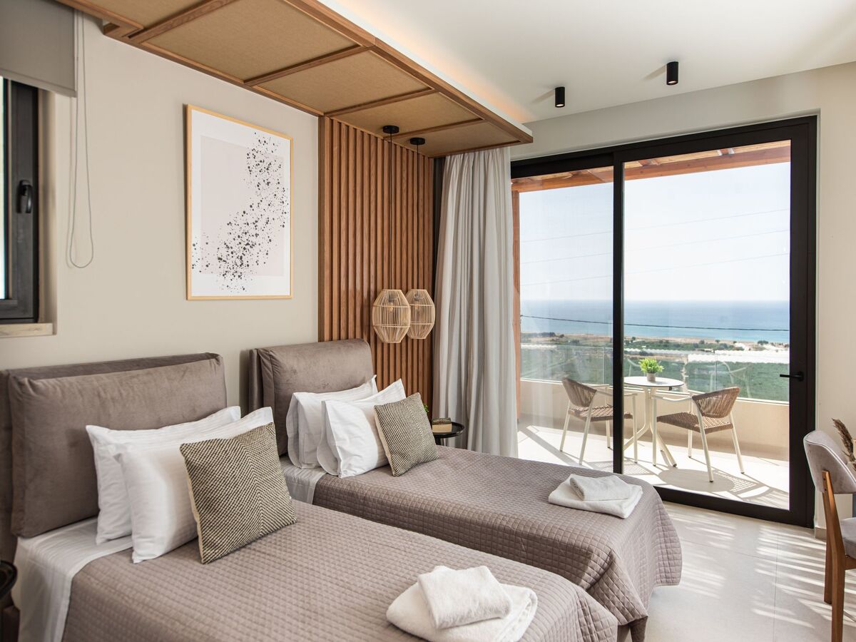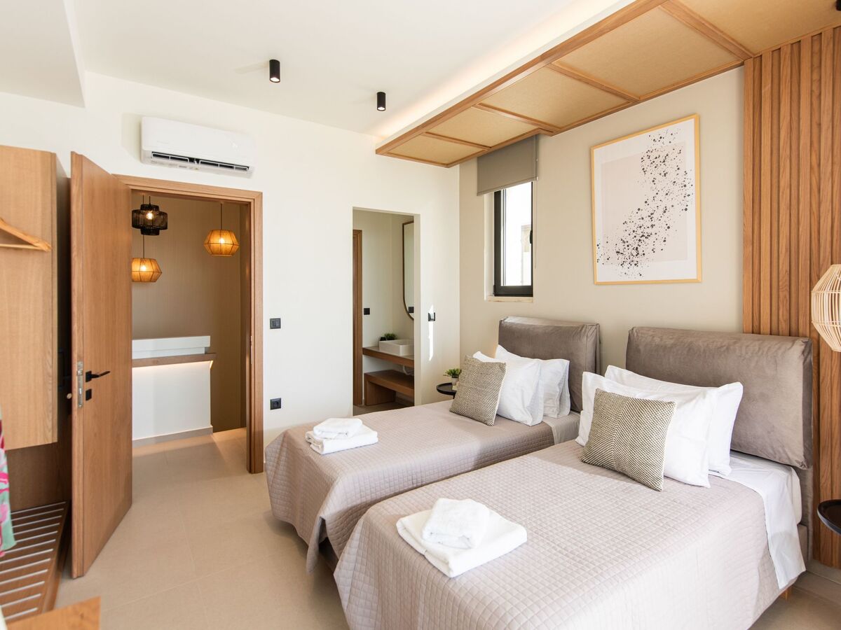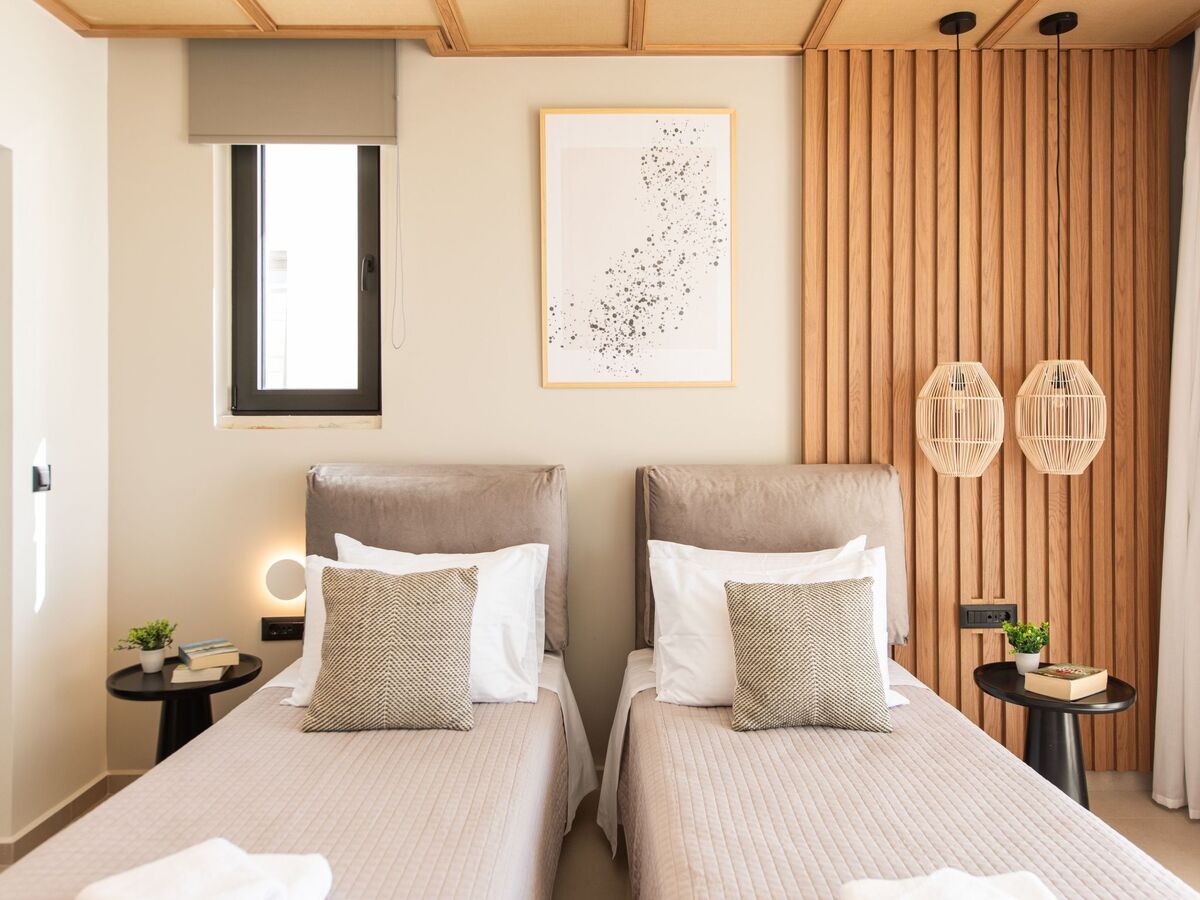 Bedroom 3: Twin-size beds (0.90*2.00) that can be converted into a double one, A/C, ensuite bathroom with shower, sea view from the balcony