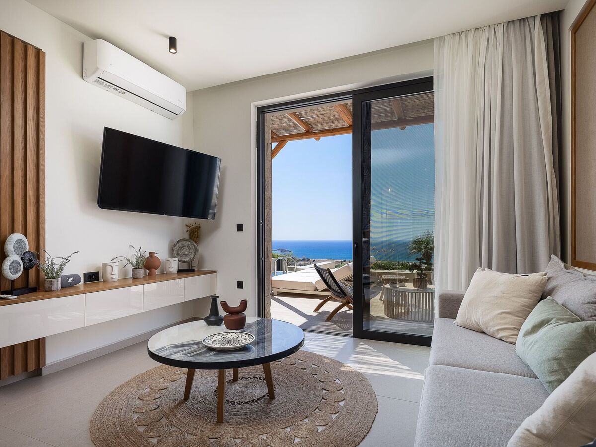 Living area with sofas, 55’’ Smart Satellite Smart, pool access, Sea view