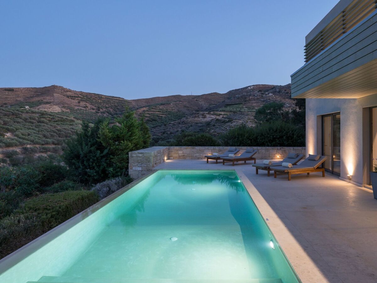 This villa presents a perfect harmony of luxury and nature, facing northeast to capture inspiring views of rural Cretan landscapes.