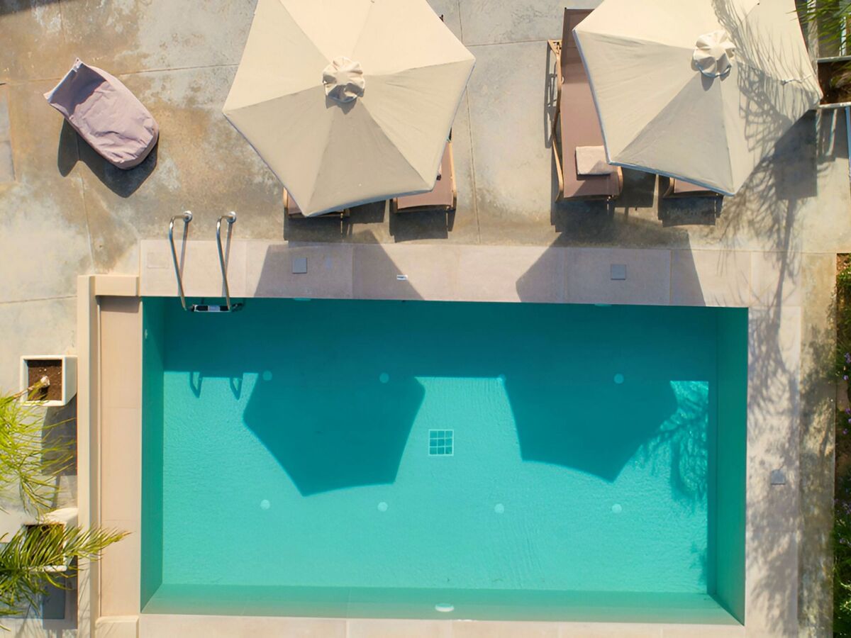 The highlight of Villa di Capaka is its inviting outdoor area — a private pool surrounded by sun loungers, olive trees, and a dining patio with a BBQ, where guests can enjoy long evenings under the soft Cretan sky.