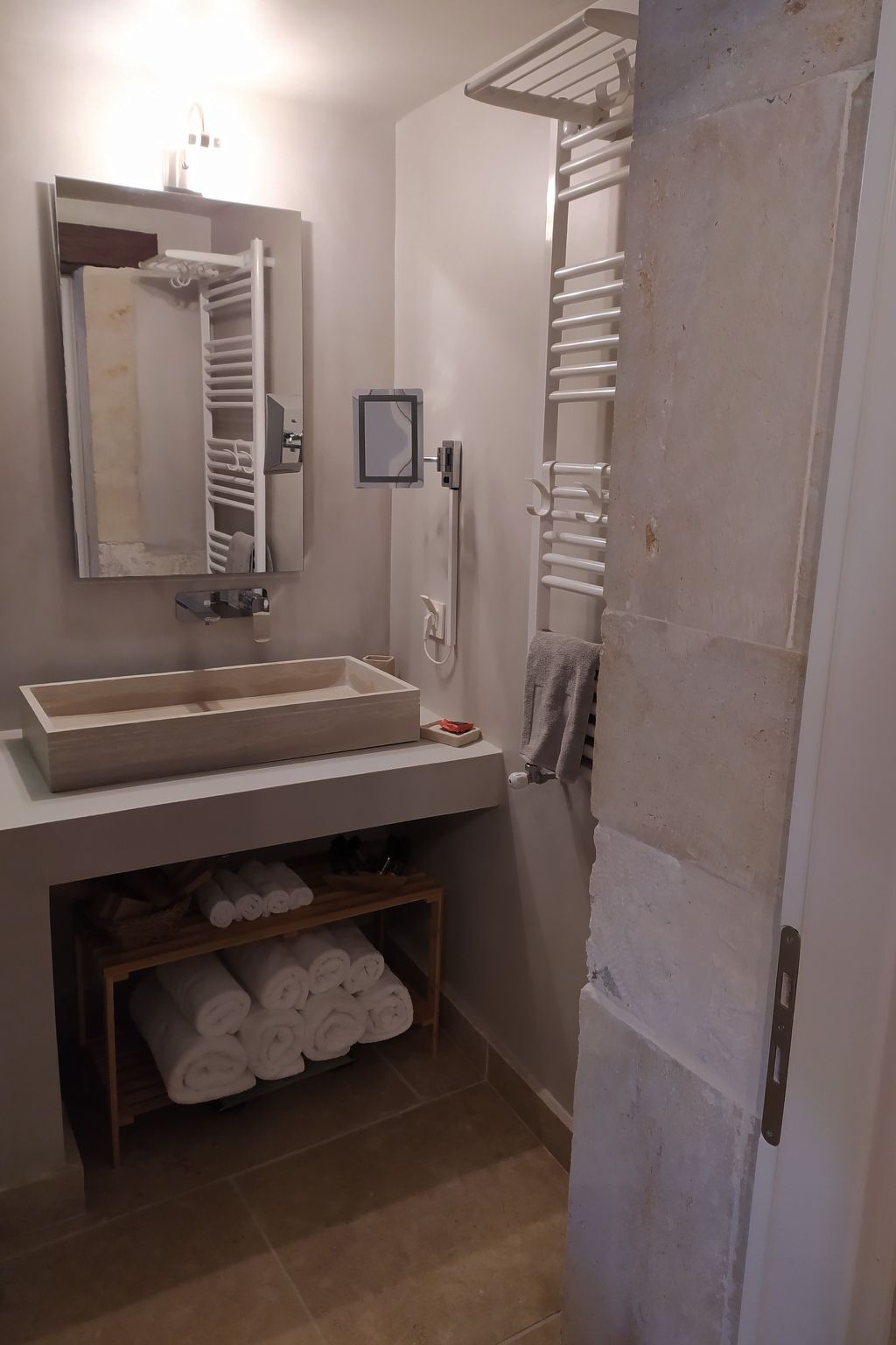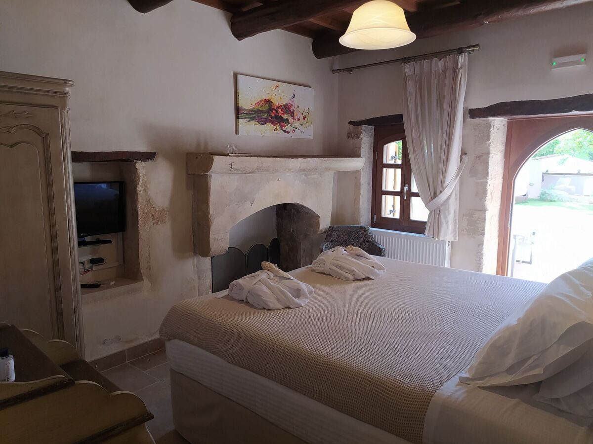 There is also a bedroom next to it, which includes a queen bed, a fireplace and direct access to the garden.