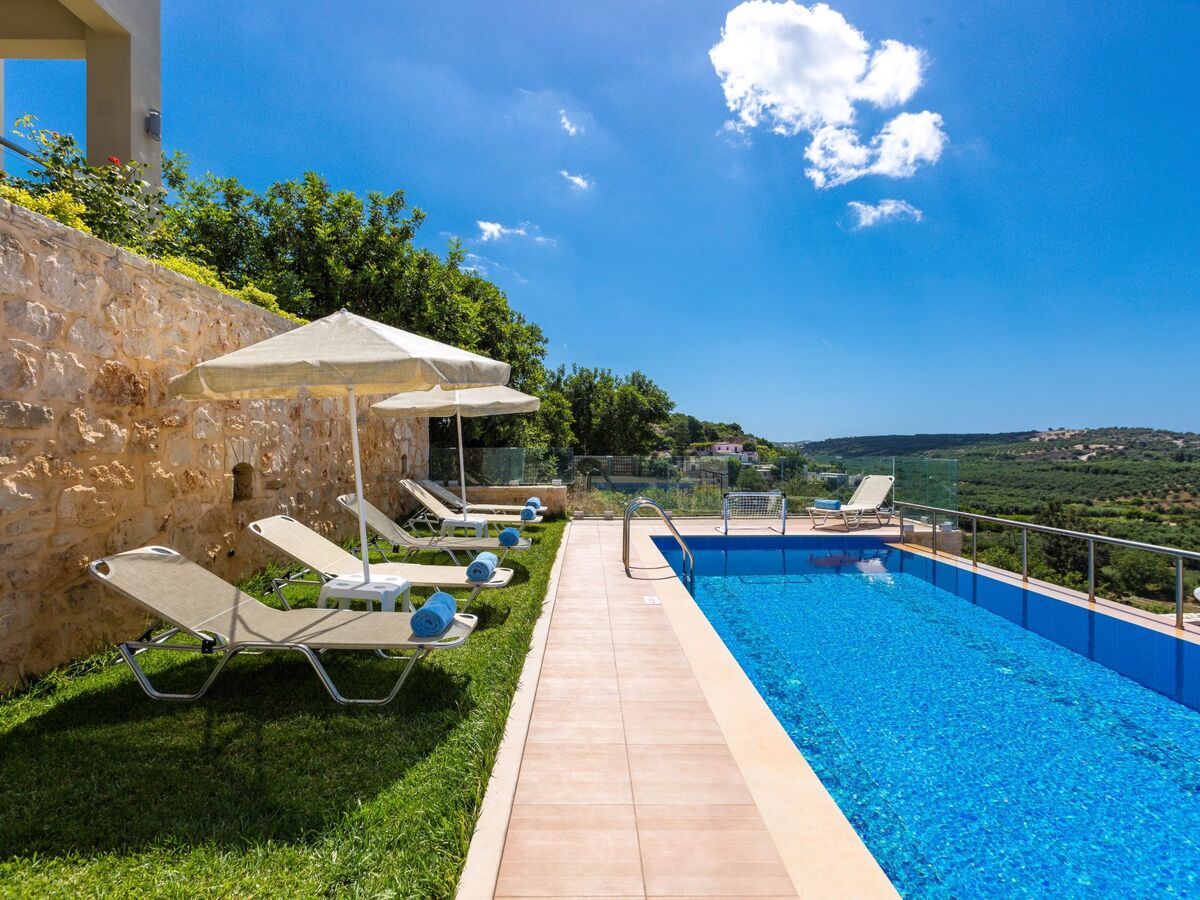 private heated swimming pool (1.50m deep) and a lawn covered area, equipped with sun beds, umbrellas and an outdoor shower, where you can relax and enjoy the sun and fresh country side air all day long! It also features an outdoor sitting area and stone built BBQ facilities with an extra sink, for doing the cleaning up, after enjoying you homemade meal and al fresco dining!o make things even better, the two Villas share a shaded playground area, located right next to the BBQ facilities, with children’s toys and covered with a soft pad, where our younger guests will love to spend their time, as well as an extra relaxation area with sun beds and umbrellas.