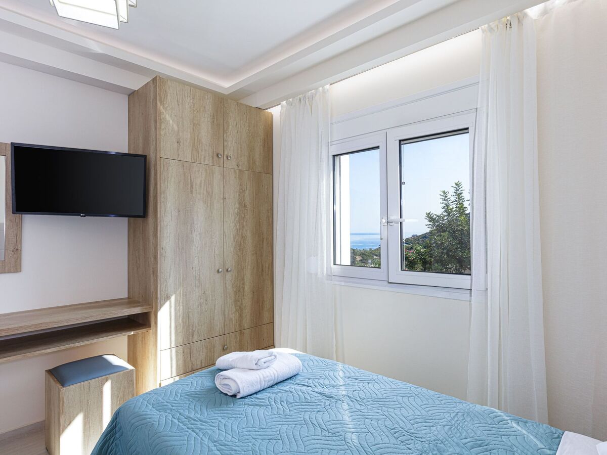 The bedrooms have private balconies, air conditioning, and a safe for guests to enjoy.