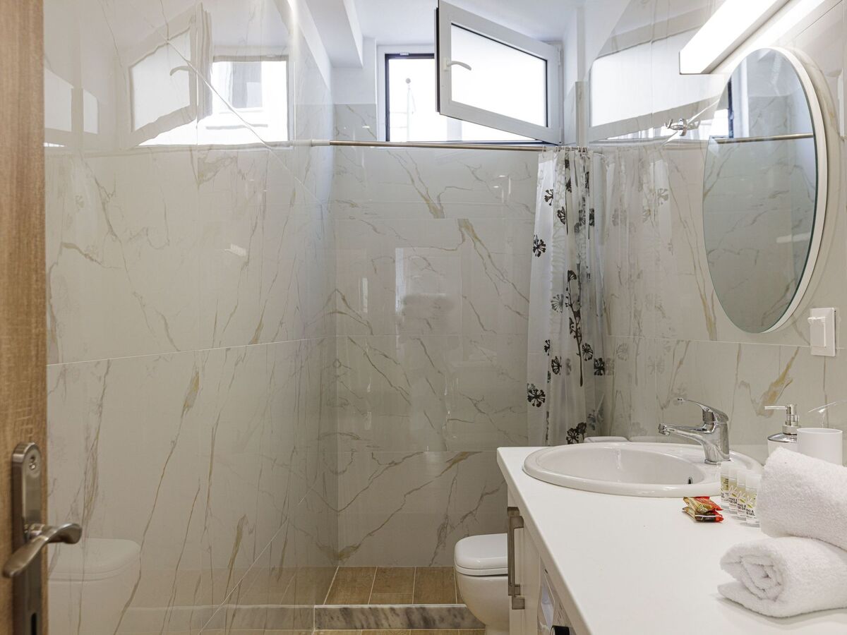 There are 2 full bathrooms of which one is ensuite, with 2 towels per guest and a hairdryer.