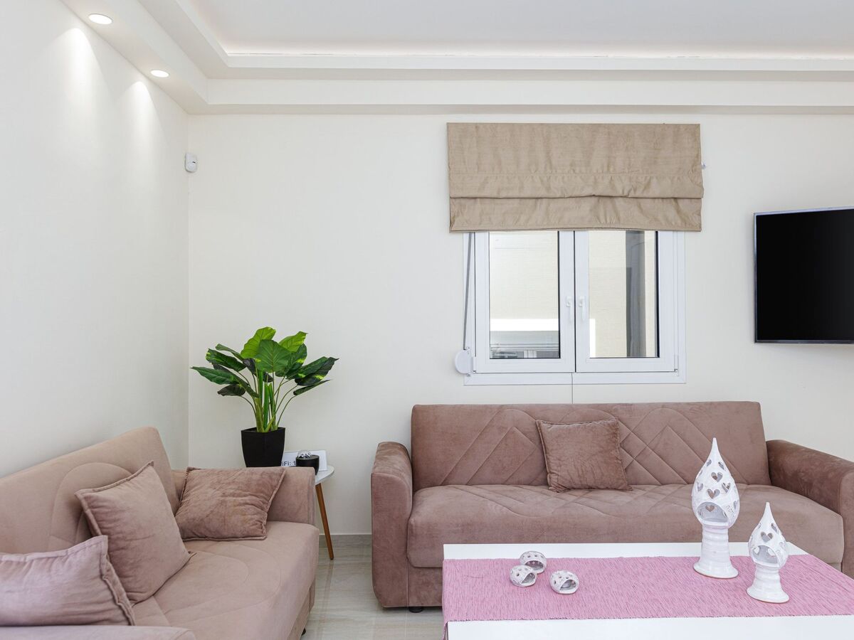 The family holiday rental is in the bay area of Bali and near many superb Cretan beaches including Livadi (1 km), Bali (1.4 km), Caves beach (2.1 km), Karavostasi beach (2.2 km), and Agios Nikolaos (2.4 km).