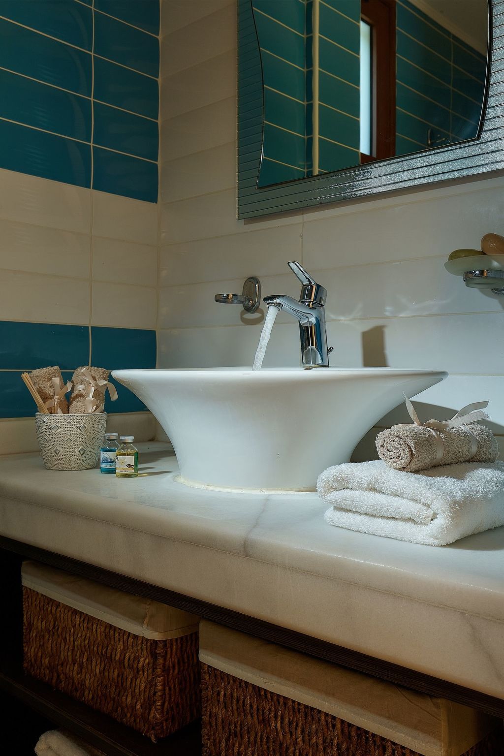 You can swim at the light blue transparent waters of the secluded beach enjoying the Cretan sun under the umbrellas and the sunbeds provided by us.