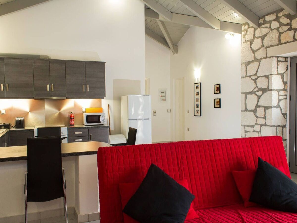 The living room area is spacious, featuring a cozy double sofa bed, an LCD TV with over 300 satellite channels, a DVD, and an MP3 player, making it the perfect spot for entertainment and relaxation.