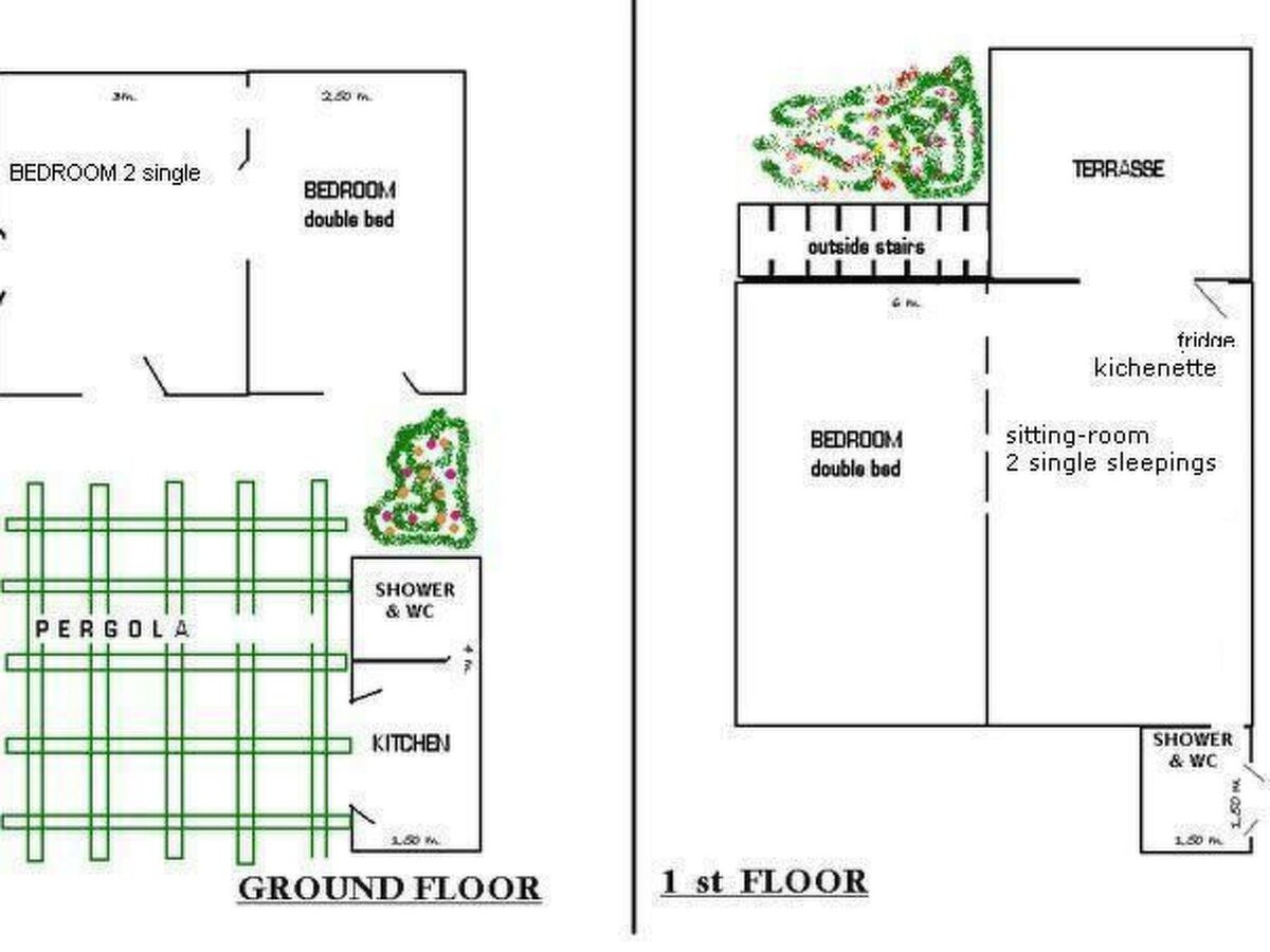 On the ground floor, there is a double bed bedroom and the other has two single sofa beds more adapted for children.