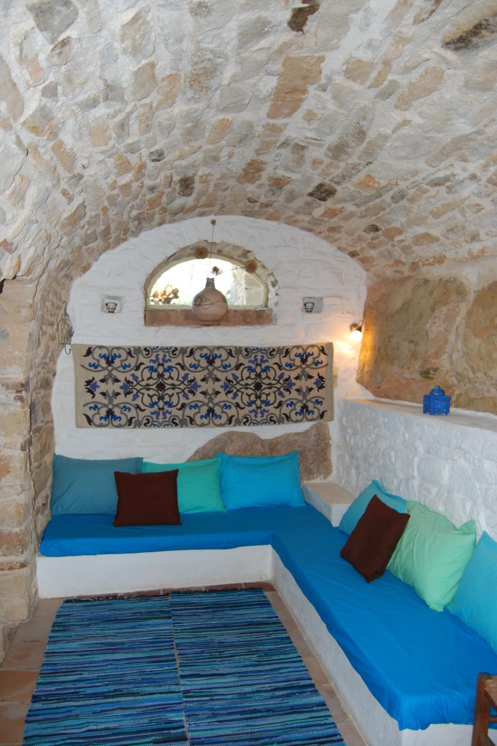 This stony house is quietly and idyllically situated on a hill planted with olive trees and wild pistachio.