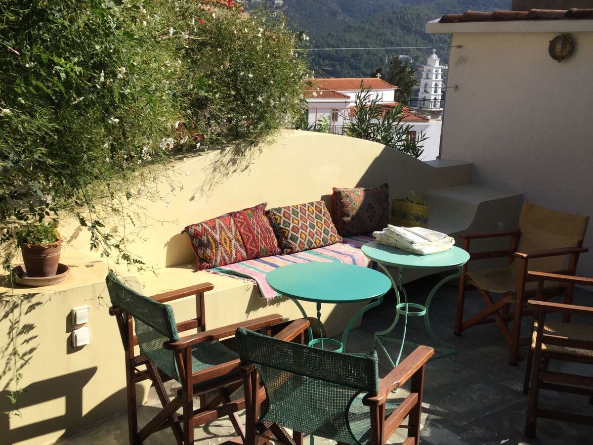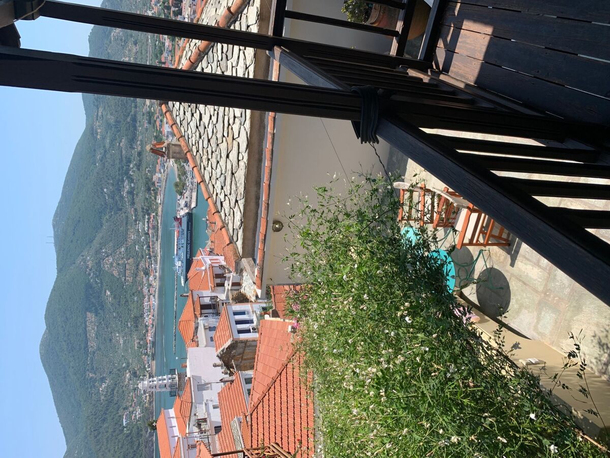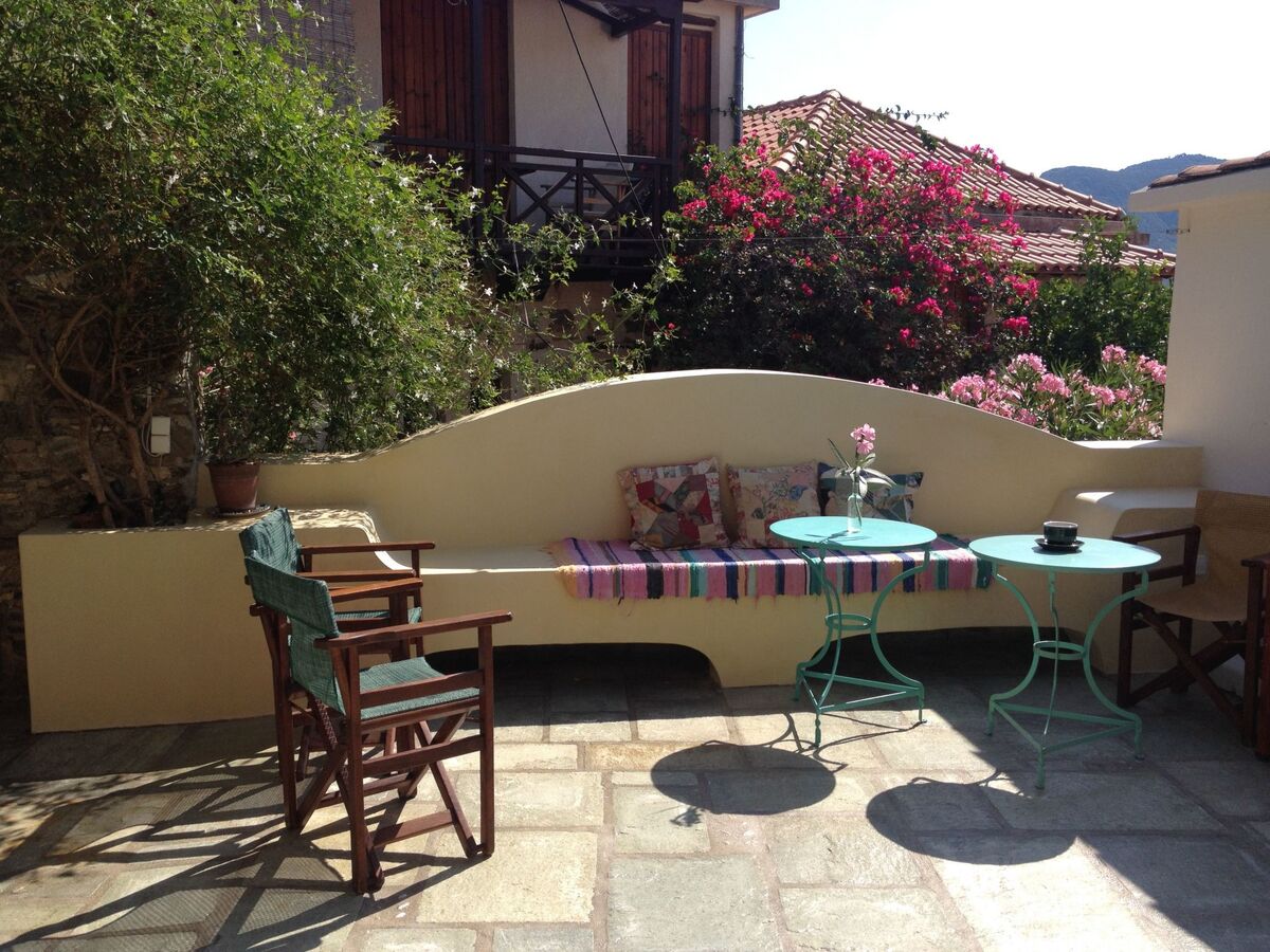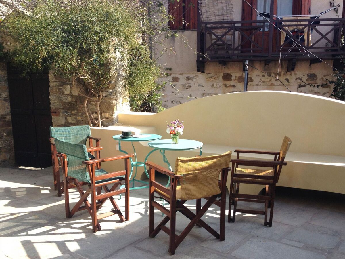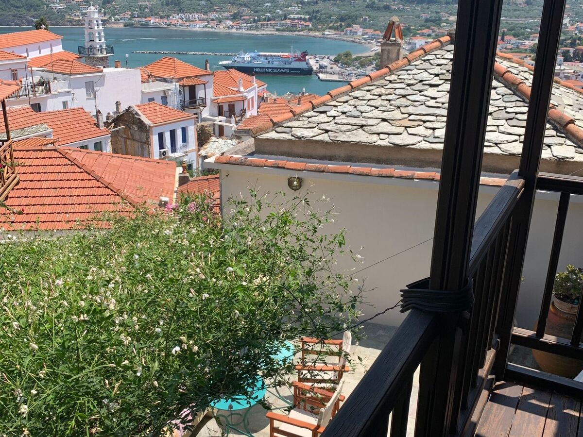 Stylish and artfully decorated holiday home with courtyard and balcony with stunning sea views, located in the old town, very quiet on a car-free road on the island where the musical "Mamma Mia" was filmed, a successful combination of tradition and modern comfort.