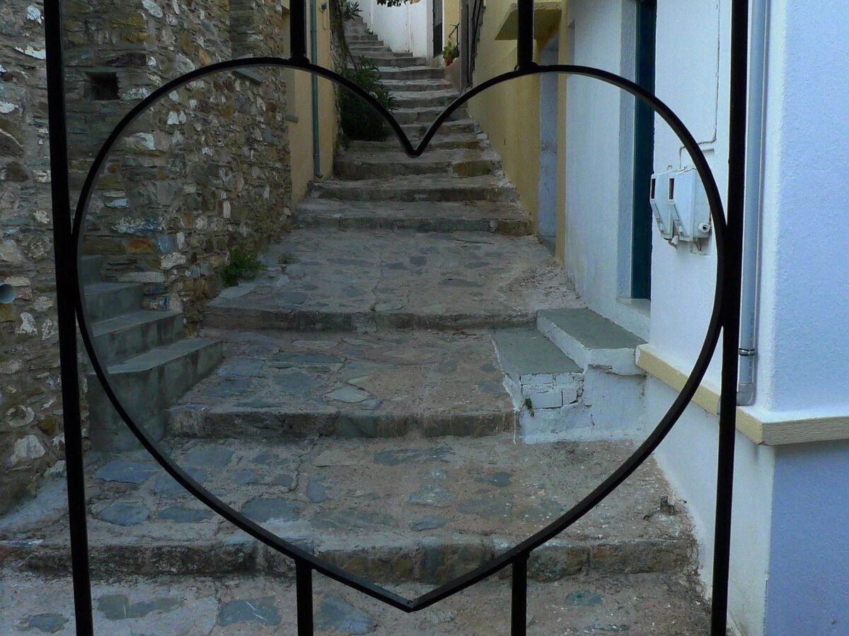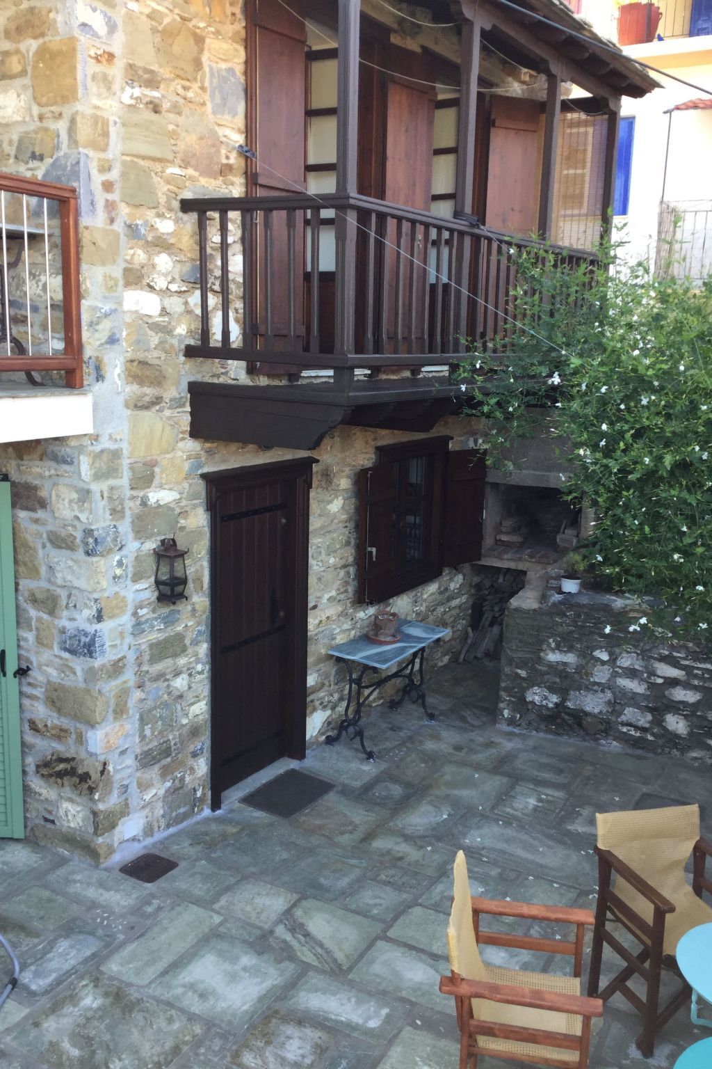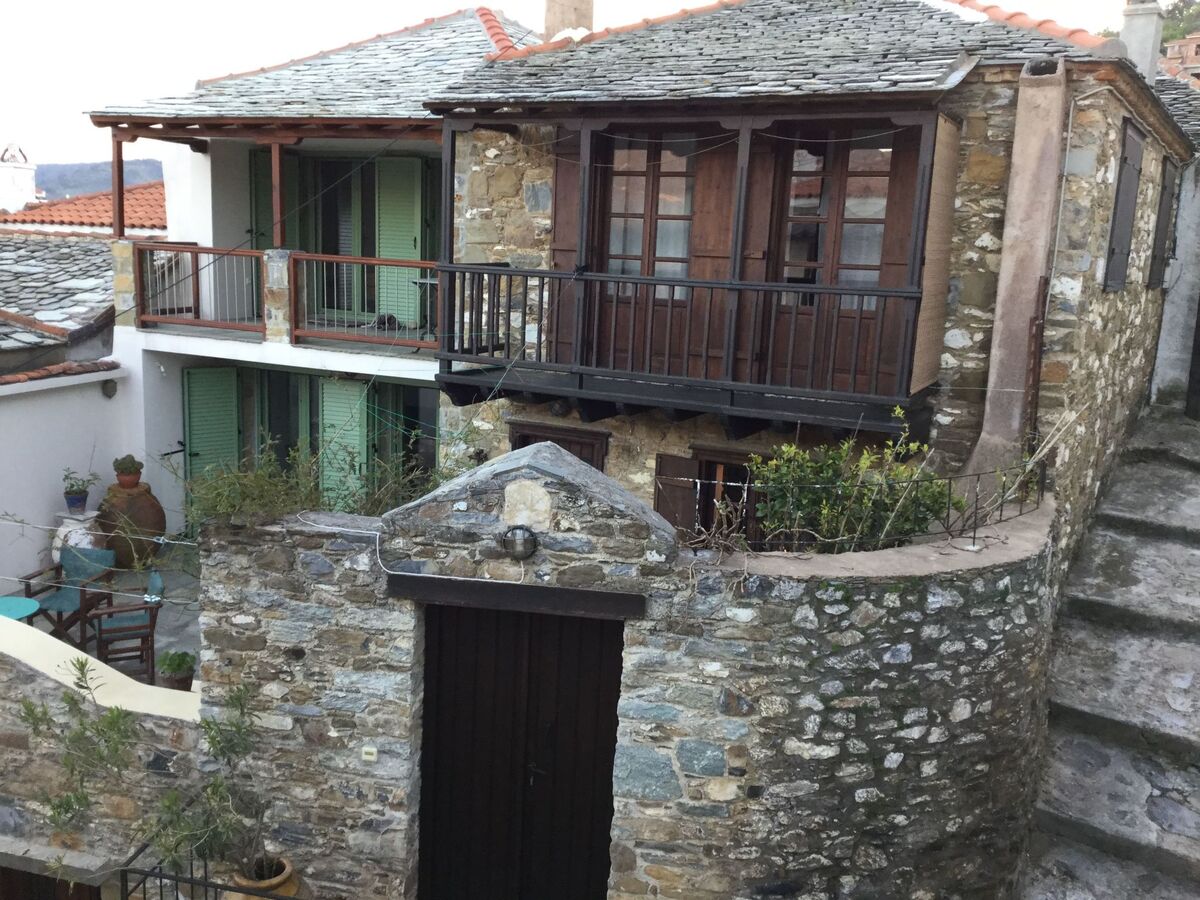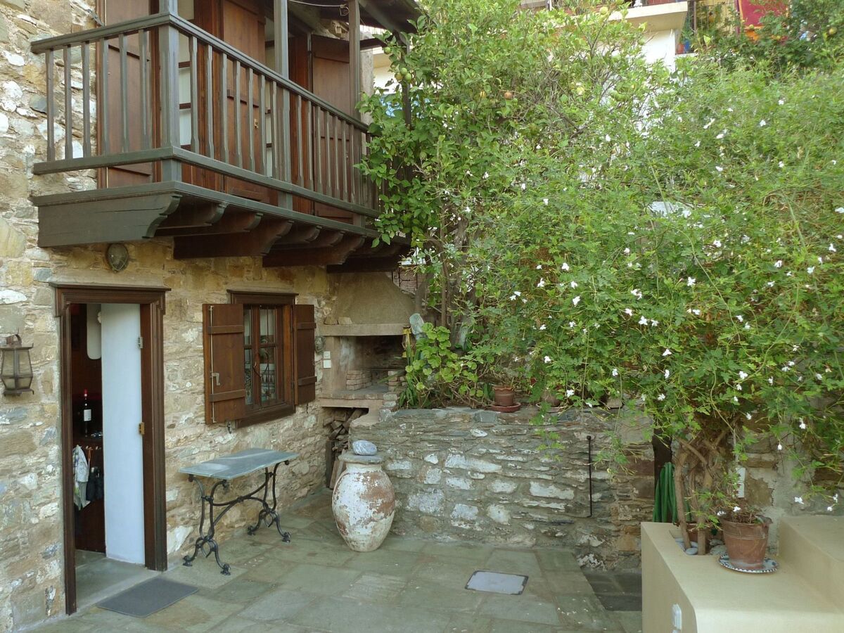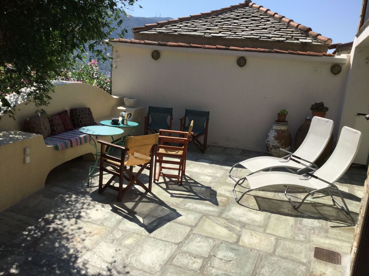 Stylish and artfully decorated holiday home with courtyard and balcony with stunning sea views, located in the old town, very quiet on a car-free road on the island where the musical "Mamma Mia" was filmed, a successful combination of tradition and modern comfort.
