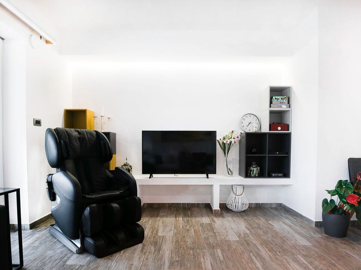 The ground floor features an open-plan living space with a well-equipped kitchen, dining area, and cozy living room with a flat-screen TV and complimentary Netflix.