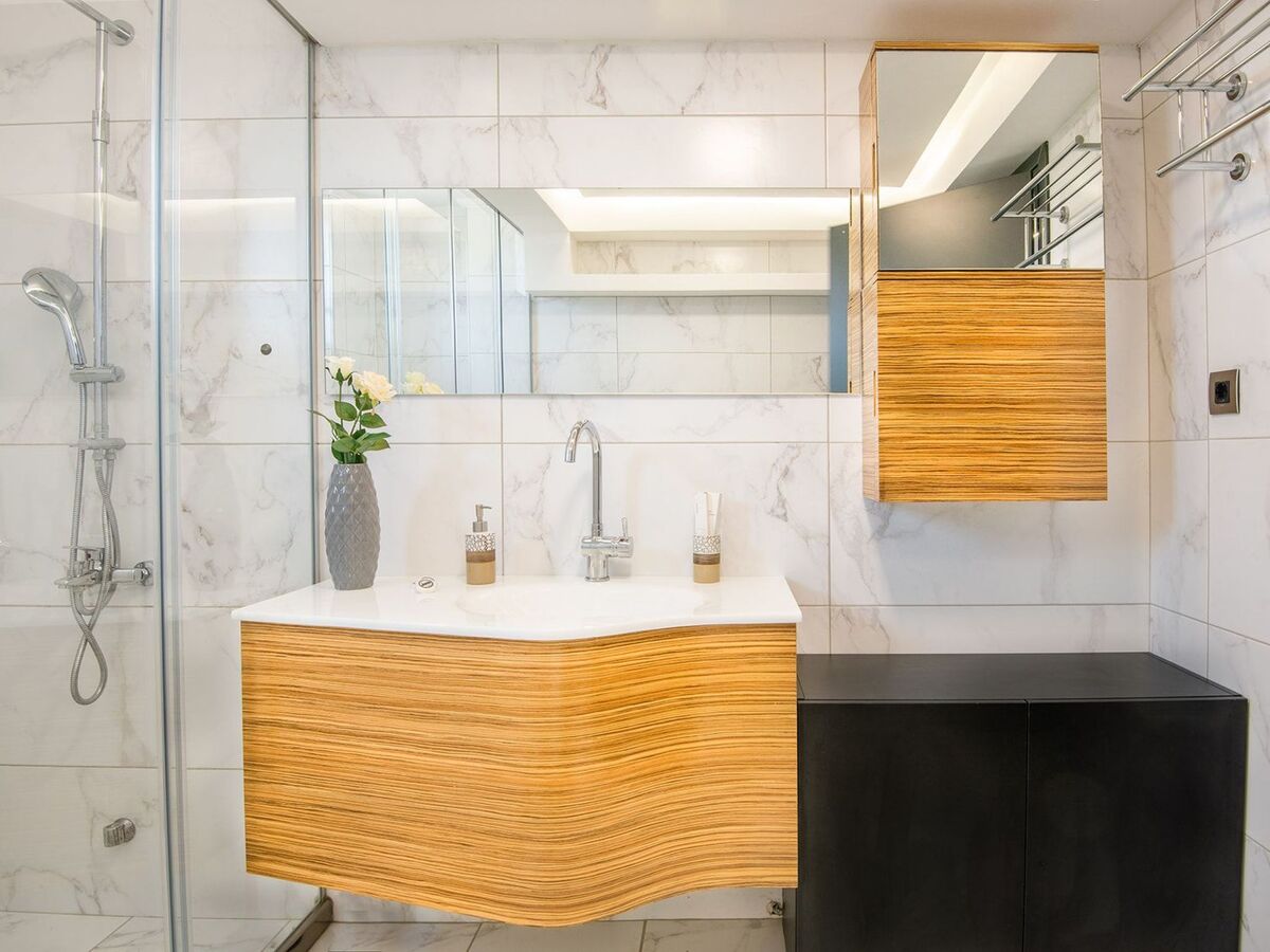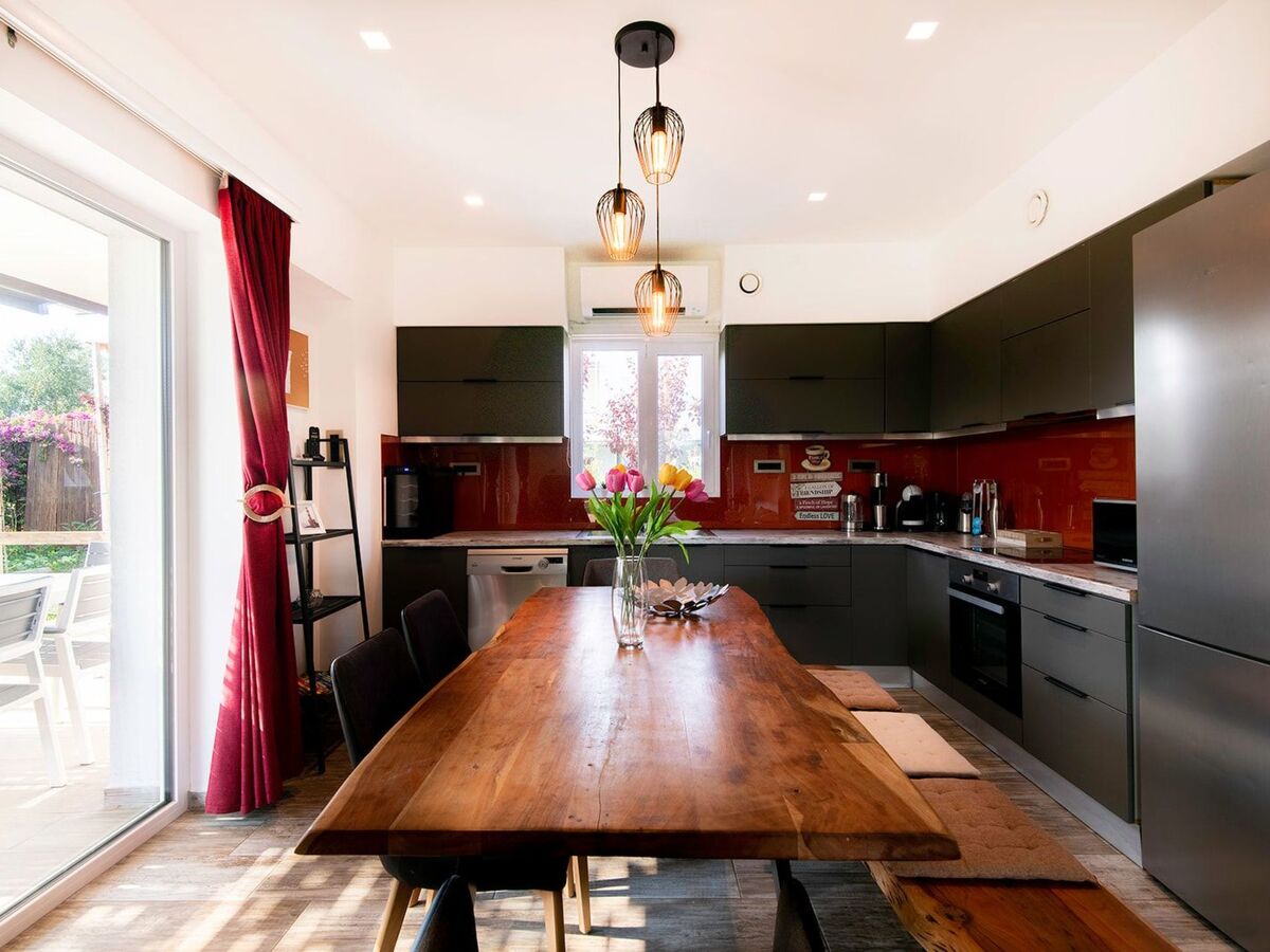 The outdoor area is a haven for relaxation and enjoyment, equipped with stylish garden furniture on the spacious terrace, a sunshade, a barbecue grill, and a highlight; a pristine private swimming pool with a state-of-the-art robotic cleaner.