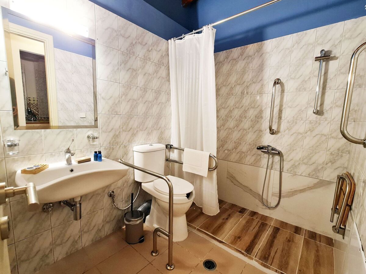 One guest house is accesible for disabled persons and there is a bathroom equipped for disabled persons.