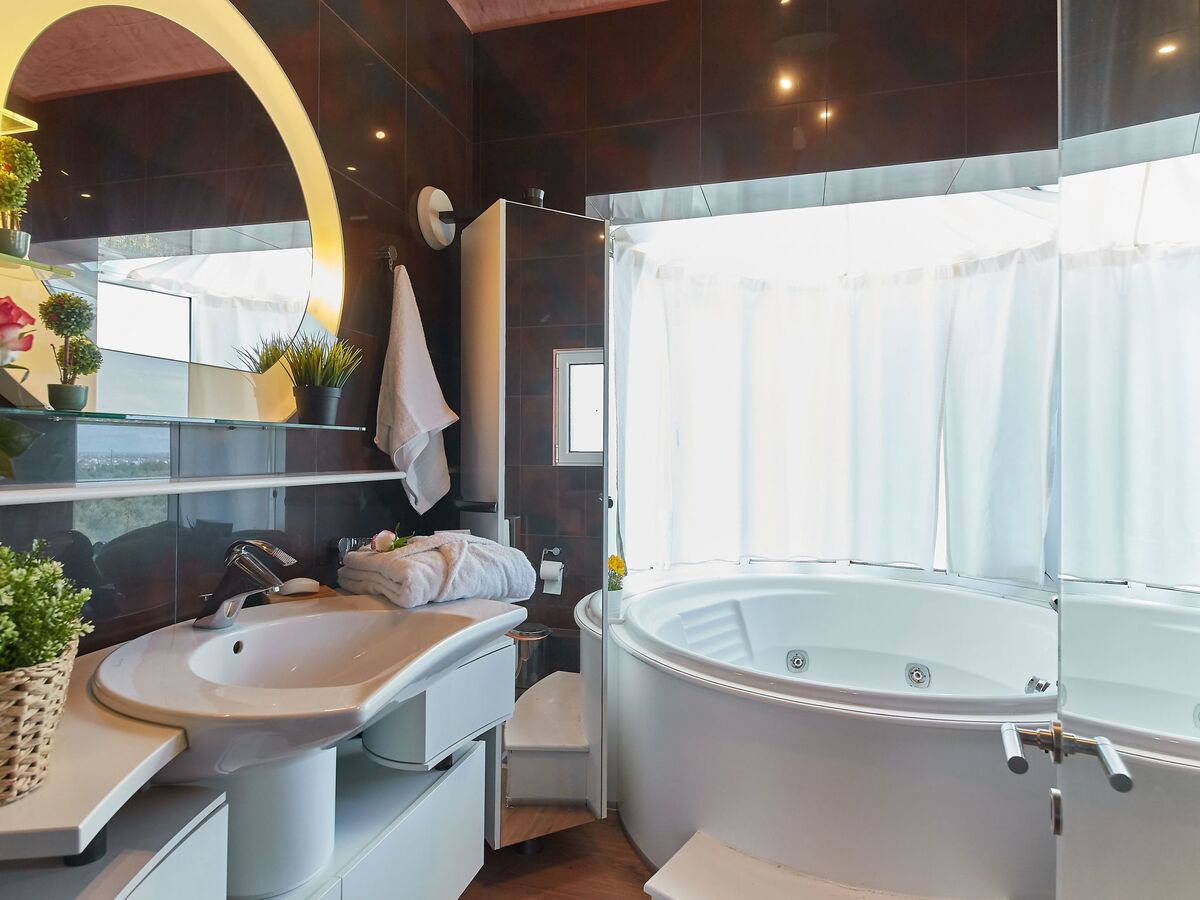 A large outdoor jacuzzi situated next to the pool overlooking the Corinthian Bay can give the needed relaxing sense.
