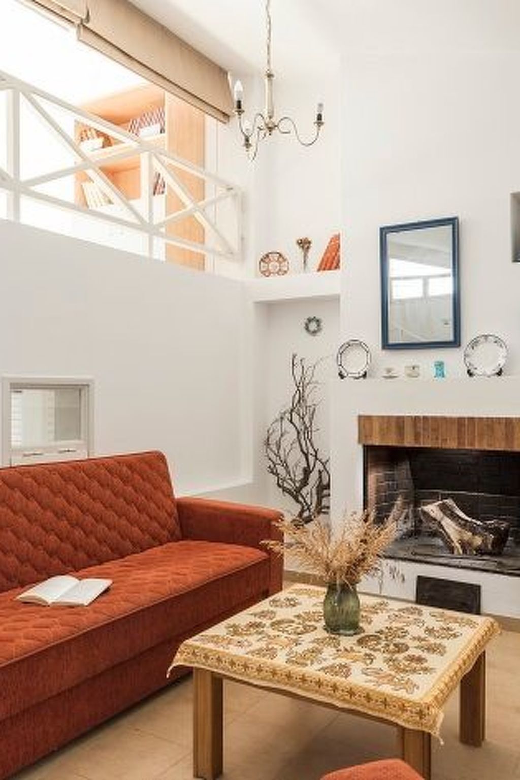 Le salon occupe le deuxième niveau, il dispose également d'une cheminée et d'une armoire.