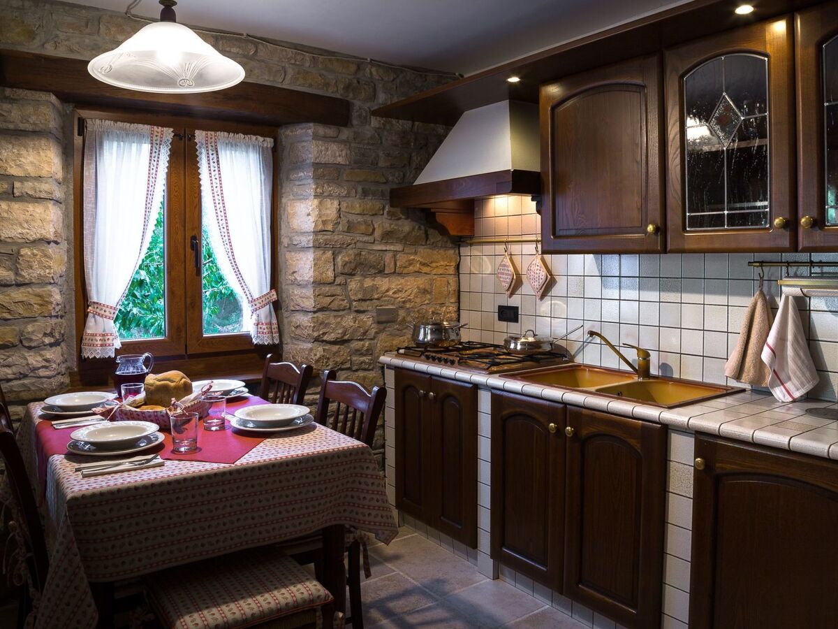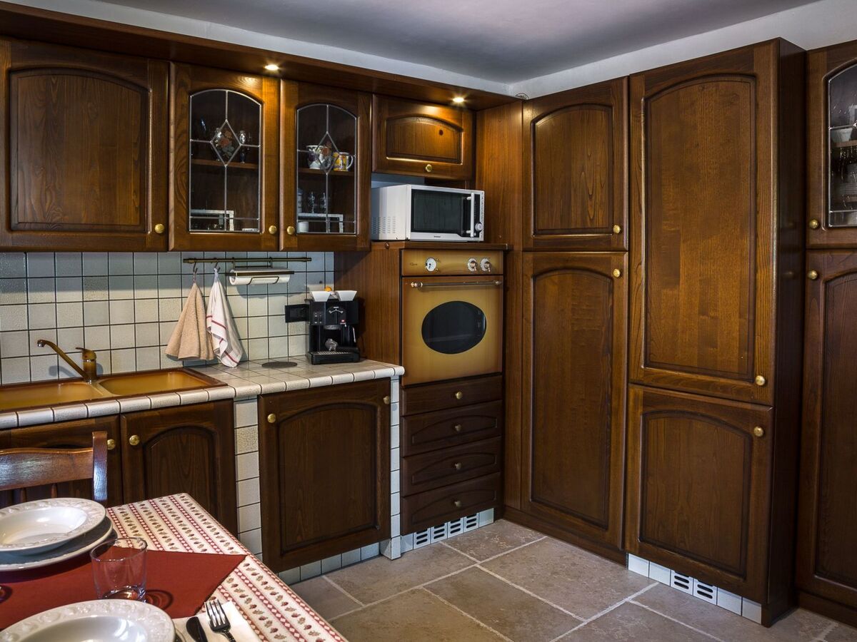 The kitchen, located on the ground floor, is equipped with modern appliances such as a dishwasher, oven, microwave, refrigerator and freezer.