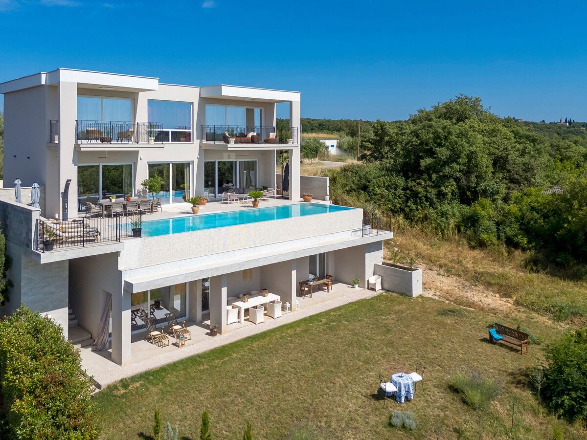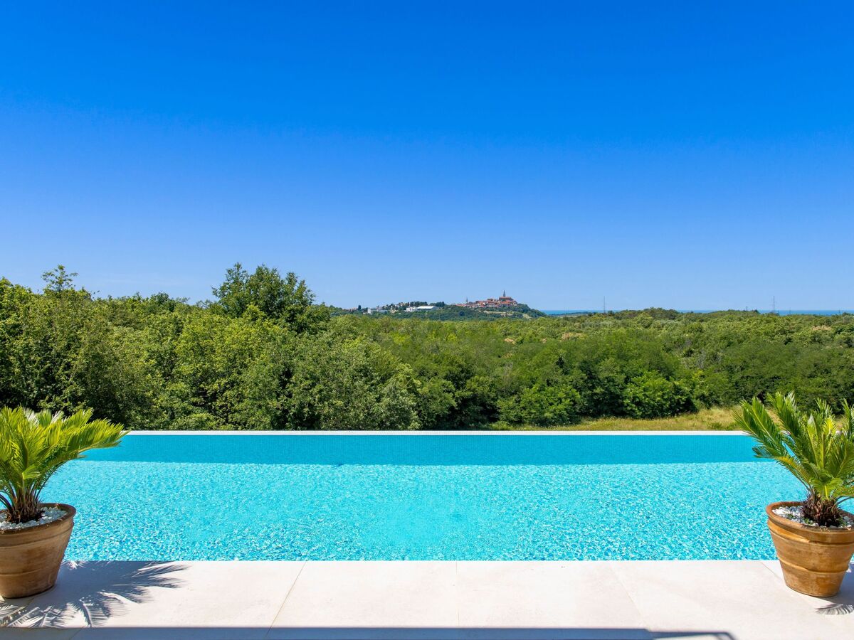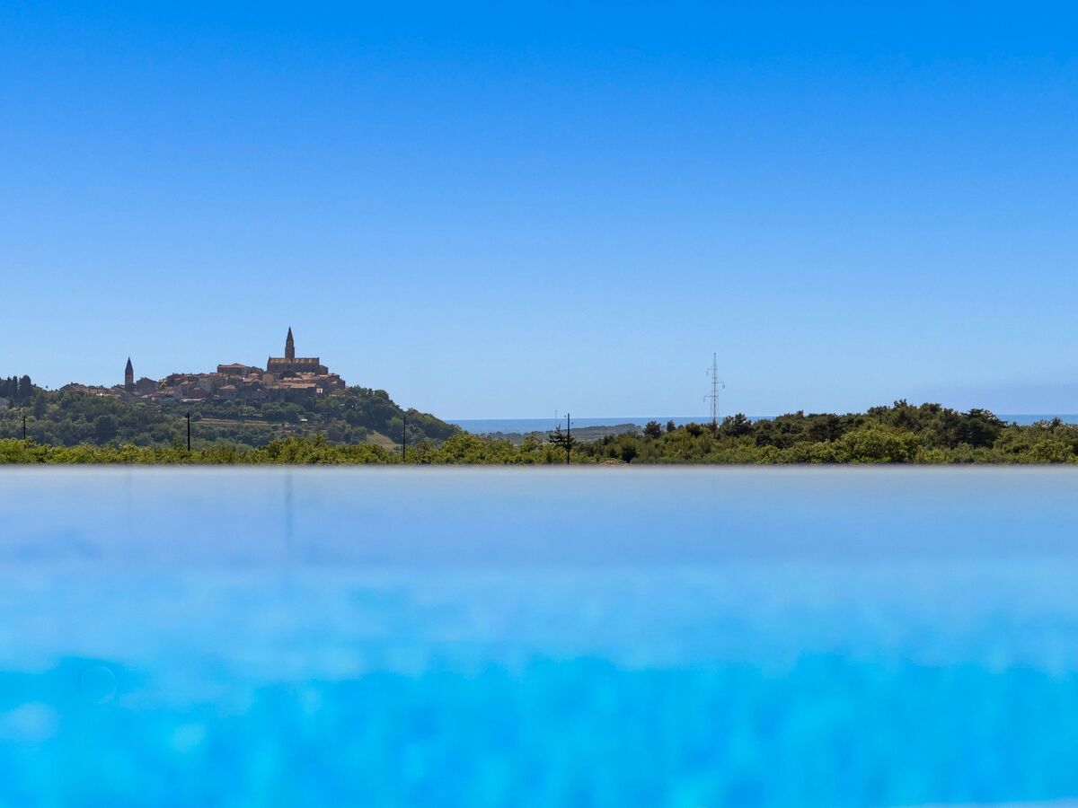 From the generous rooftop infinity pool, gaze across the sea, forest, historical hilltop town of Buje, and even the Italian Alps.