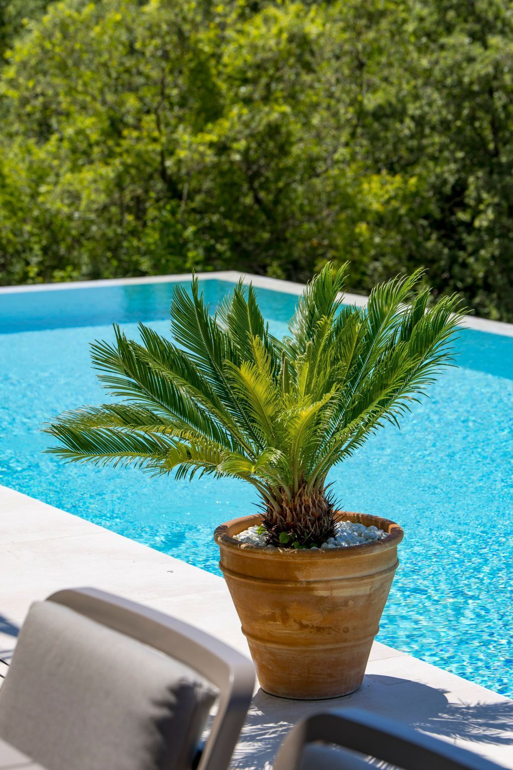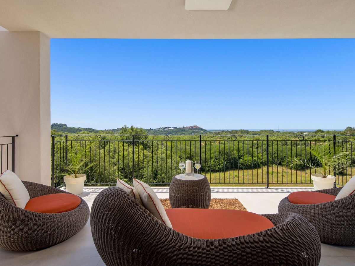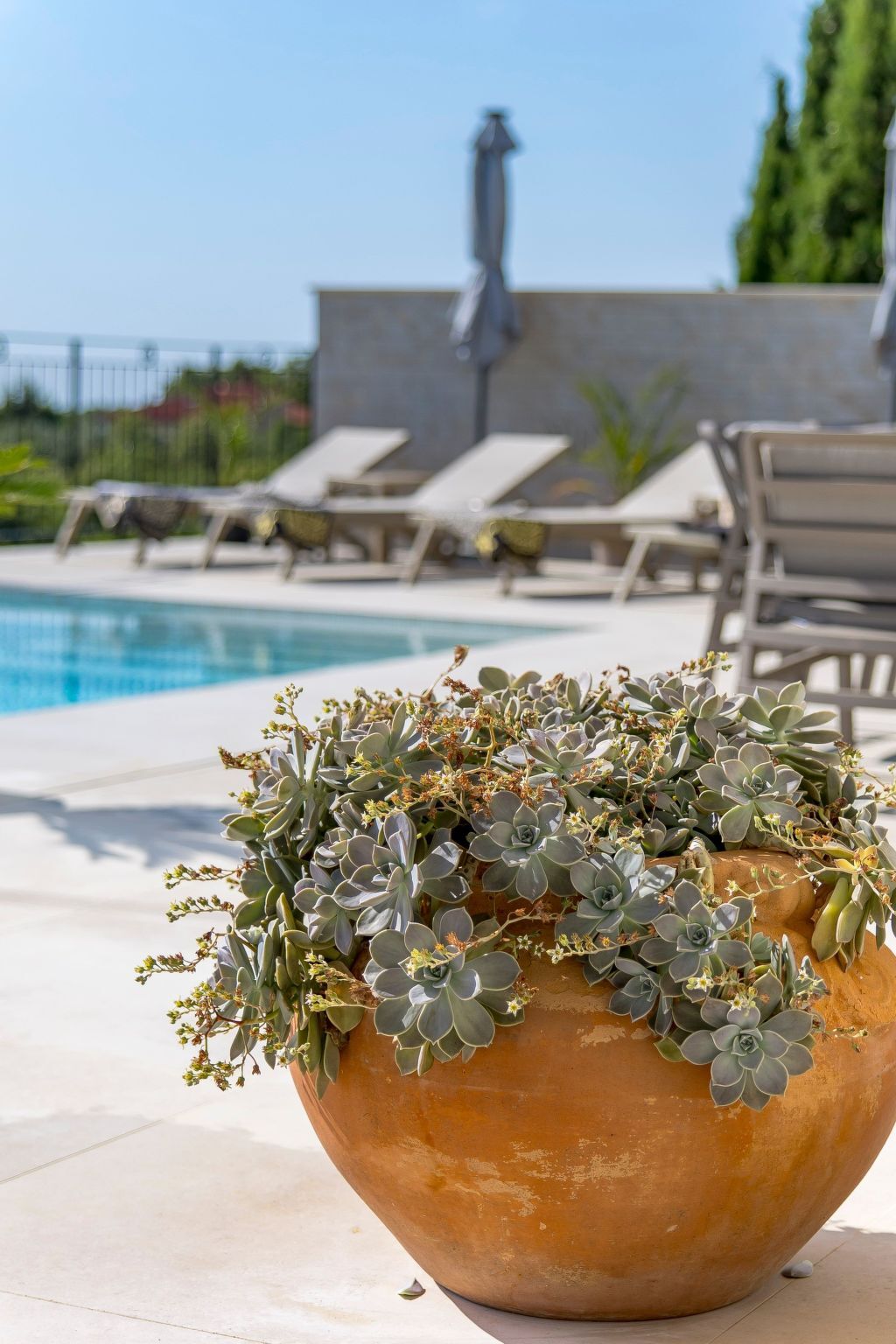 From the generous rooftop infinity pool, gaze across the sea, forest, historical hilltop town of Buje, and even the Italian Alps.