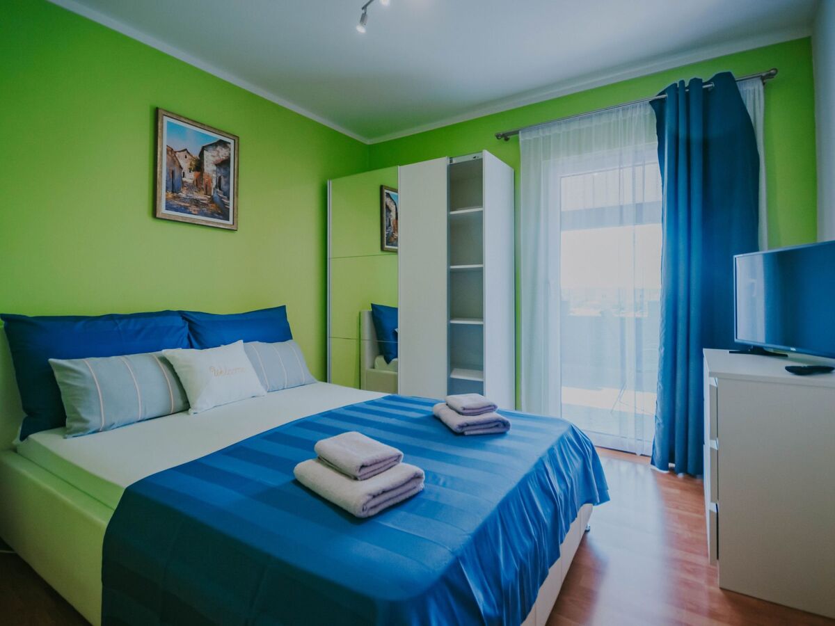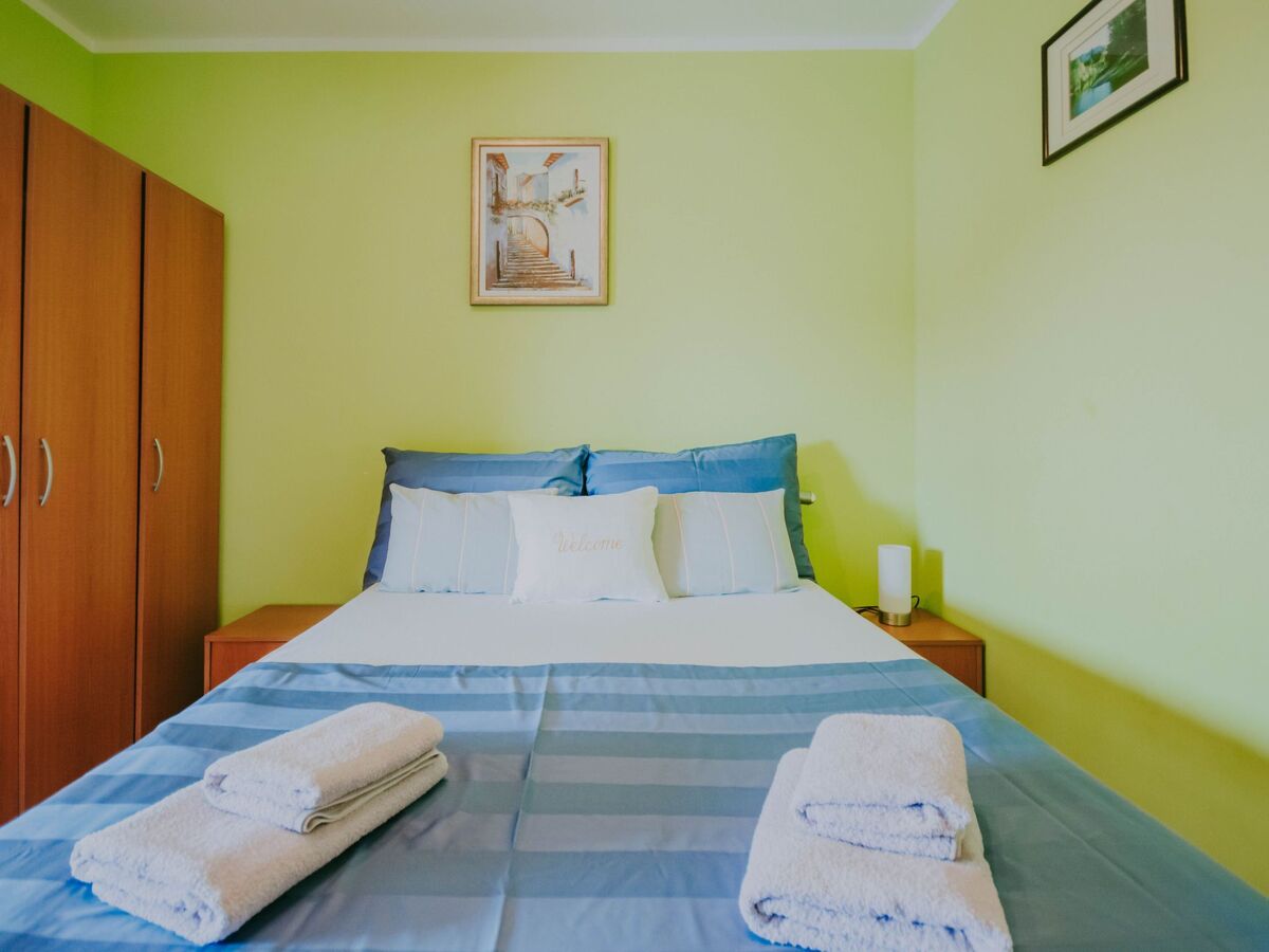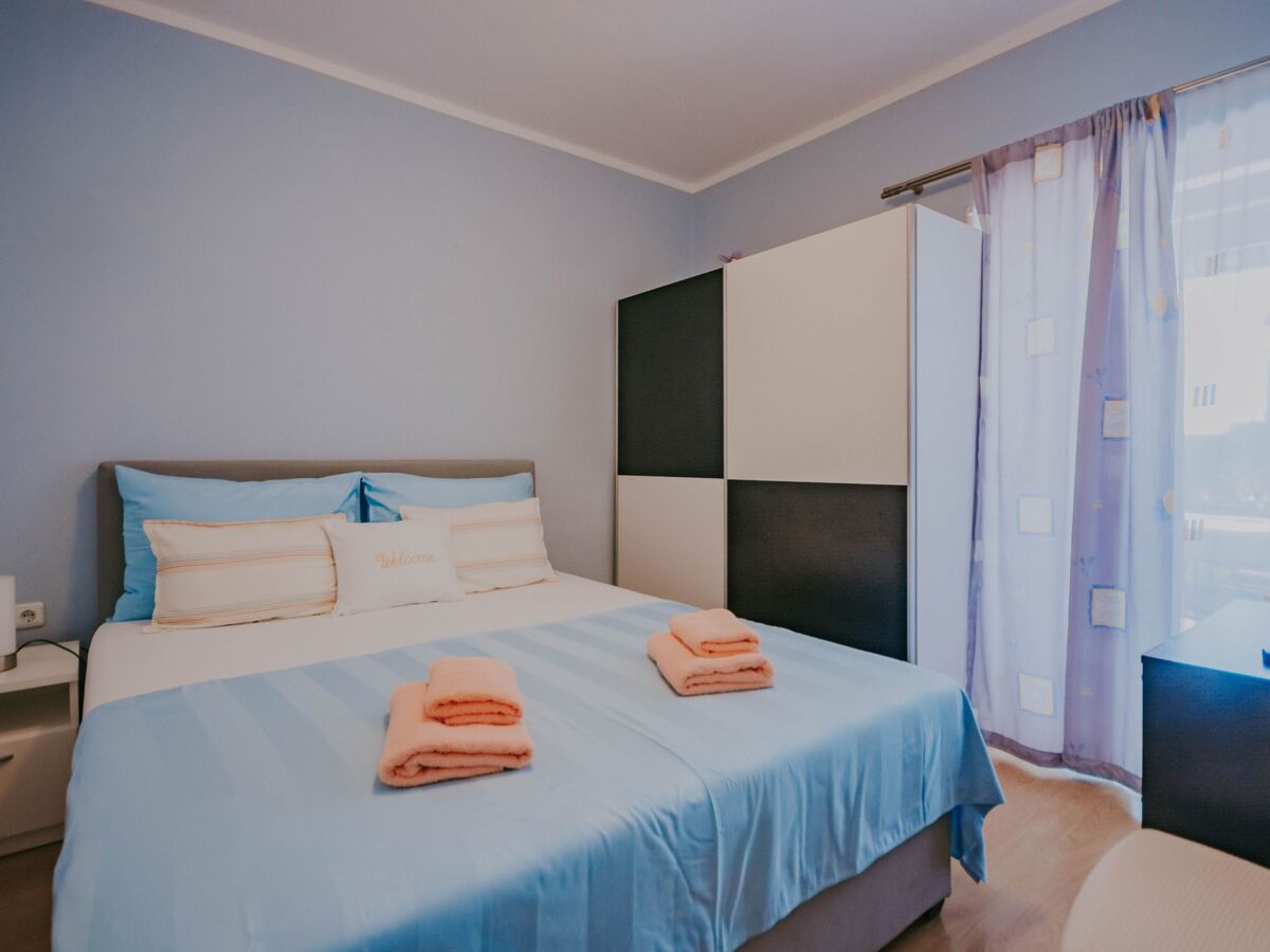 The ground floor consists of the following rooms: a living room with a TV and a double sofa bed, and next to it two bedrooms each with a double bed.