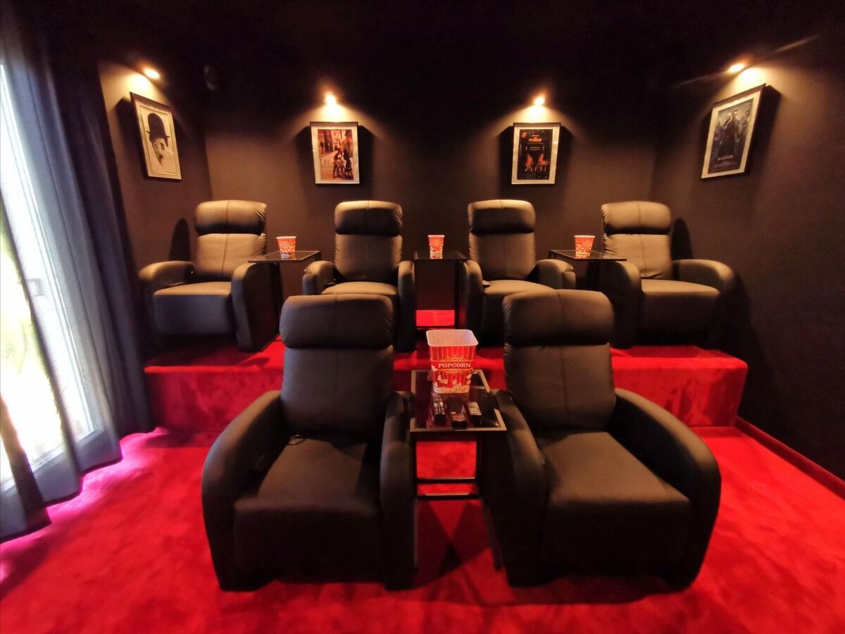 Film nights can be enjoyed in the incredible home cinema of this villa (there's of course a popcorn maker, for the wholesome experience) and the fun continues on the outside of villa Santo
