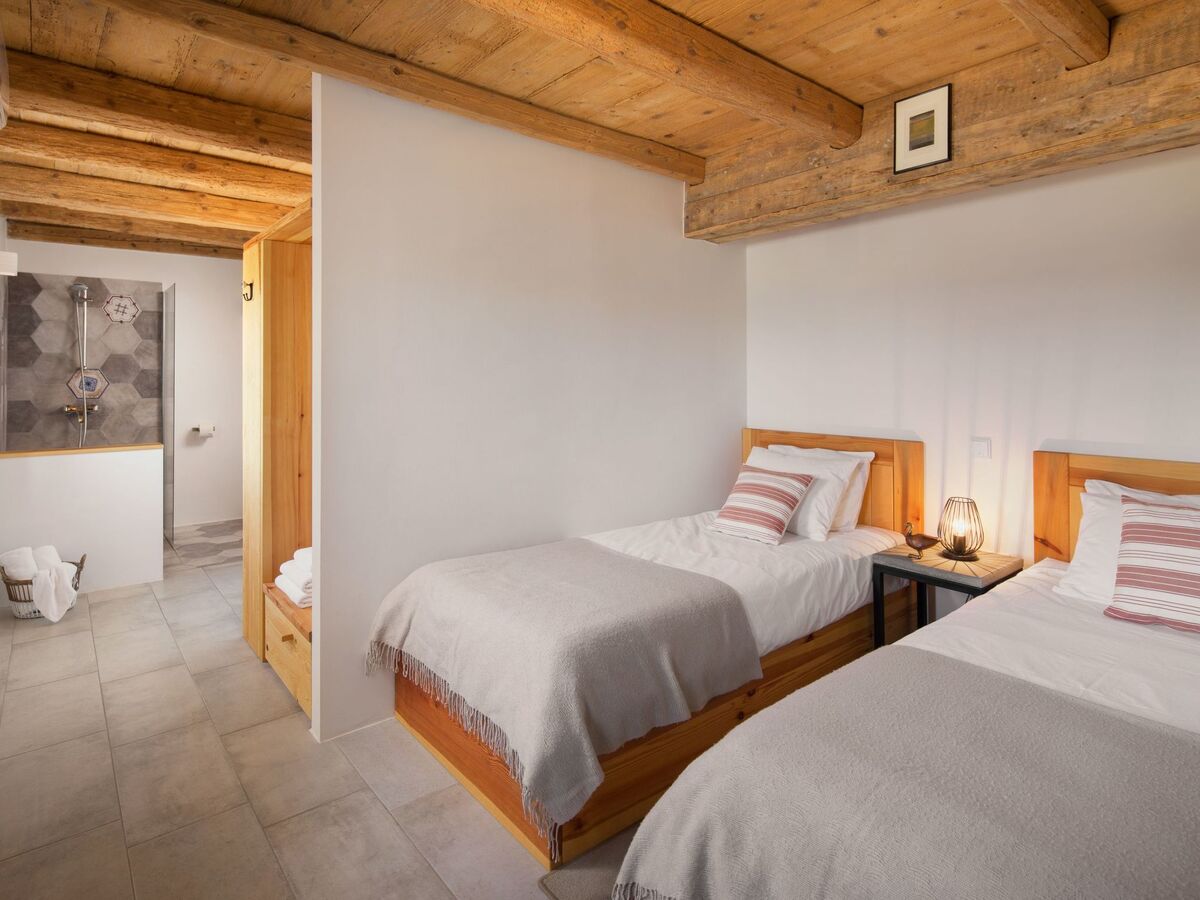 The first floor comprises two bedrooms, one with two single beds 90cm wide, the other with a double bed 160cm wide.