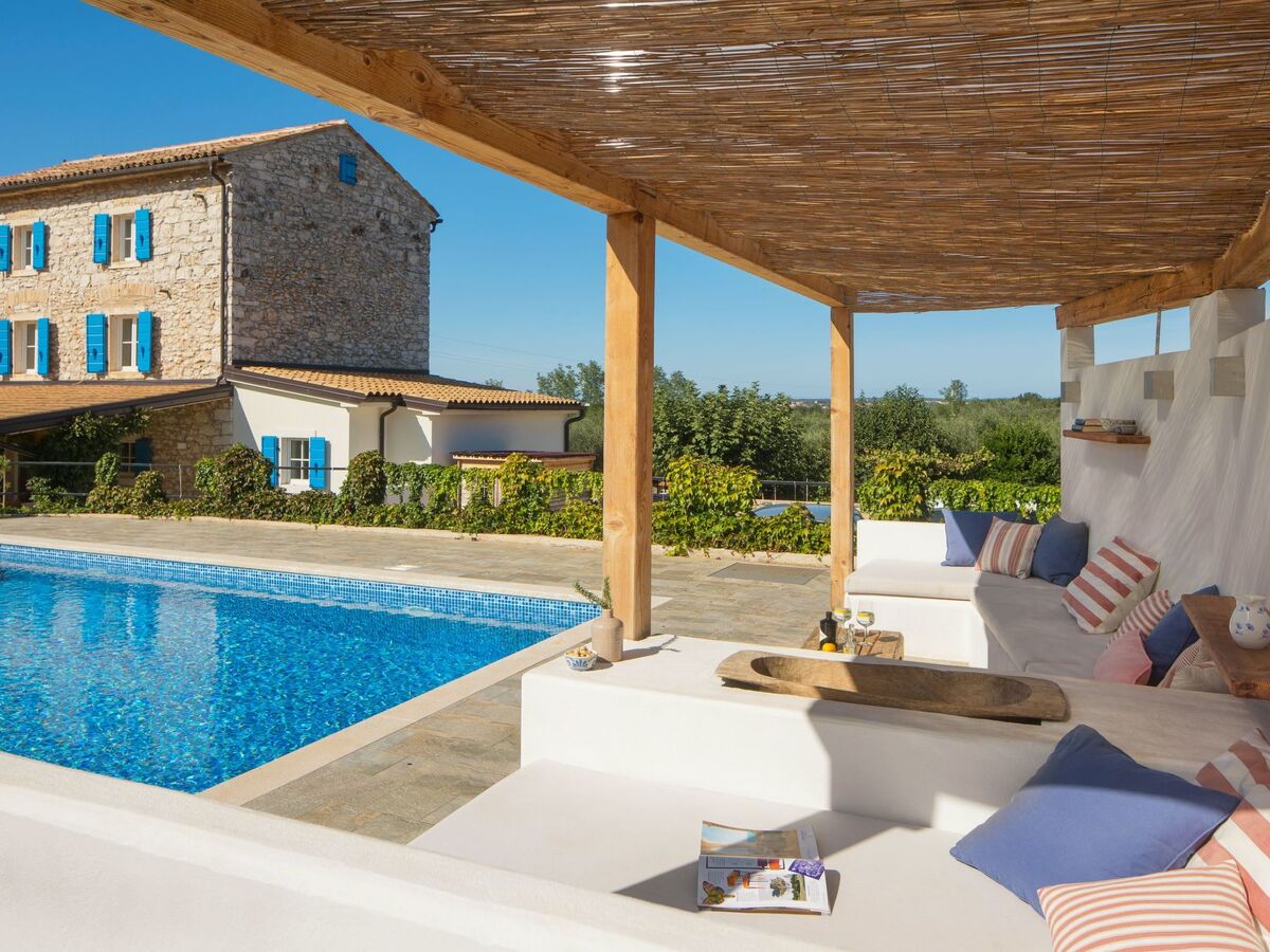 This detached single-family house is in a quiet village at the end of the street in beautiful and green surroundings, just 3km from the sea and 4km from Umag.
