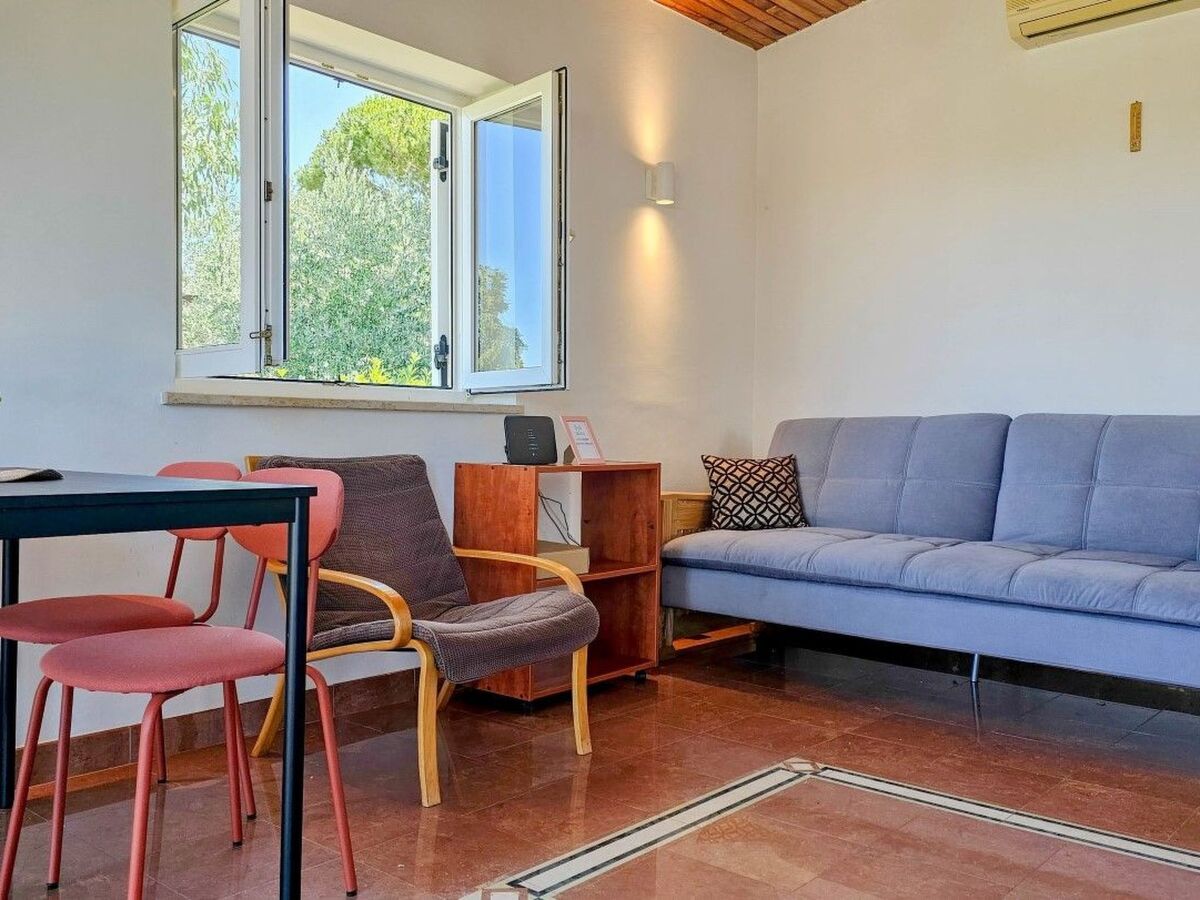 The house has a well-equipped bathroom and a pleasant living room with a view of the greenery and the sea.