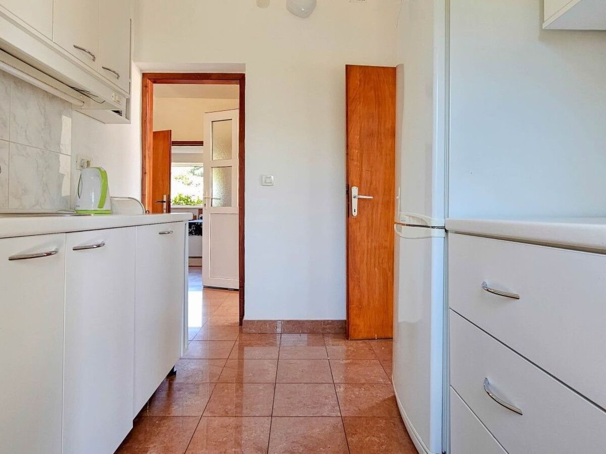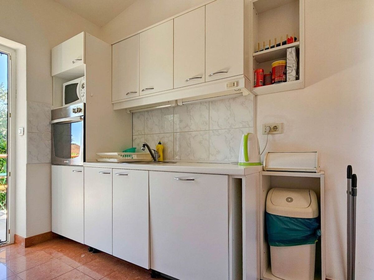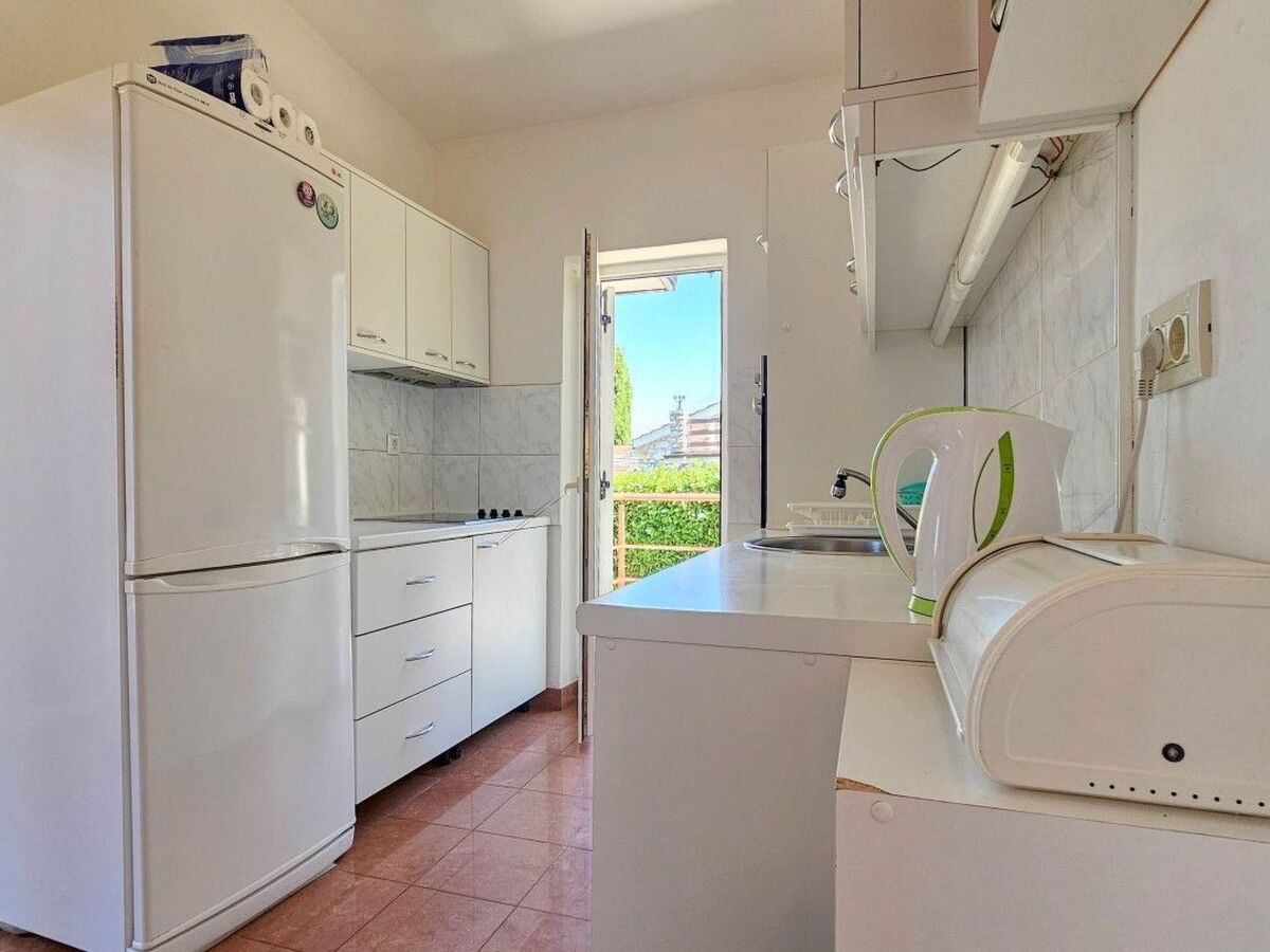 The kitchen is equipped with basic things and allows you to prepare meals, and it also has access to a small balcony with a view of the garden.